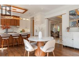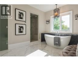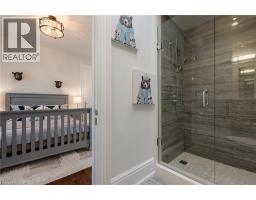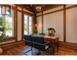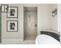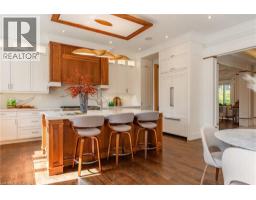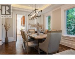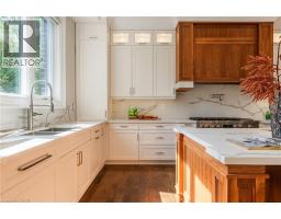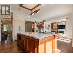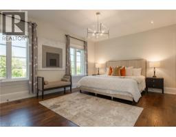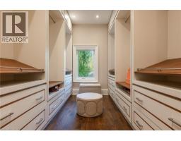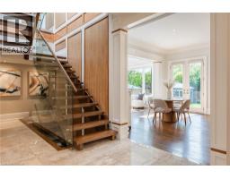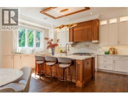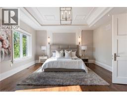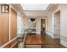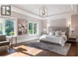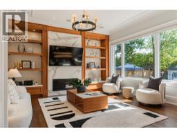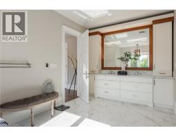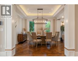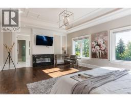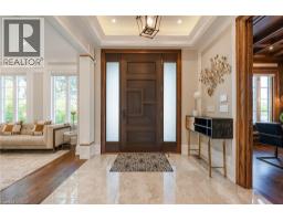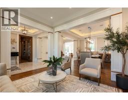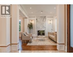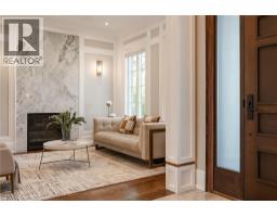 Excellent value in this custom home on a 75’ lot, offering 5,400 square feet of total living space on a quiet street in West Oakville. Built with quality materials and filled with thoughtful features, the main level showcases 10’ ceilings, detailed ceiling treatments, crown mouldings, elaborate wainscoting and wall trim, 9” baseboards, extensive pot lighting, built-in speakers, and multiple dimmer switches. The kitchen is designed for both everyday living and entertaining, featuring quality cabinetry, quartz countertops and backsplash, two sinks (including one on the island), central vacuum kick plate, Jenn Air appliance package, and a spacious eat-in area. It opens to the family room with a gas fireplace framed by custom wood shelving. Upstairs, four generous bedrooms each include their own ensuite, alongside a large laundry room. The luxurious primary suite offers an electric fireplace, walk-in closet with extensive built-ins and a vanity, plus a rare six-piece ensuite. This spa-like retreat includes two Bosco sinks with Riobel faucets, heated floors, water closet with Toto toilet, standalone soaker tub with antique-style filler, and a large shower with two Disegno rain heads, dual benches, and body sprays. The fully finished basement extends the living space with a wide walk-up to the backyard, wine cellar, wet bar, recreation room, gas fireplace, bedroom, three-piece bath, and theatre room (easily converted to a gym if preferred), plus storage. Highlights include six bathrooms, four fireplaces, a basement walk-up, extensive millwork, skylight, and second-floor laundry. Located within walking distance to two elementary schools and close to high schools, this is a superb family home in a quiet, desirable pocket of West Oakville. (id:46441)