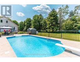 Welcome to this impressive property located just 5 minutes from downtown Minden. Set on a private 1.38-acre lot, this home offers over 2000 sq ft of finished living space, combining quality finishes, comfort & excellent indoor-outdoor flow. Inside, you'll find 9-foot ceilings, crown moulding & large windows that flood the space with natural light. Italian polished porcelain floors add a touch of sophistication, while in-floor radiant heating on both the main & lower levels provides year-round comfort. The kitchen is as functional as it is stylish with high end finishes & a bright eat-in area with garden doors that open directly to the backyard making it easy to enjoy meals outdoors or host summer gatherings. The main floor includes a spacious primary bedroom, a 2nd bedroom & a well-appointed main bathroom with soaker tub, tiled shower, & separate toilet room. Upstairs, you'll find a 3rd bedroom & a cozy den. The lower level expands your living space with a generous family/games room, bonus room, 3-piece bathroom, utility area & a convenient walkout to the driveway. Step outside to your private backyard retreat, where a stunning 18x30 inground pool takes center stage. Fully fenced in, this space is complete with a poured concrete patio, armour stone steps, a gazebo & a diving board creating the perfect blend of relaxation and recreation. Whether you're hosting guests or enjoying a quiet afternoon by the pool, this outdoor area offers a true resort-style experience. The 26x36 detached garage is ideal for extra storage & all your toys. A wide gravel driveway and established perennial gardens add both curb appeal & low-maintenance charm. Located on a year-round municipal road with public access to the Gull River just around the corner, this property offers the peace of country living with the convenience of nearby amenities. Thoughtfully finished & move-in ready, this is a home you'll be proud to own. Come discover Haliburton County's truly unique 4-season playground. (id:46441)