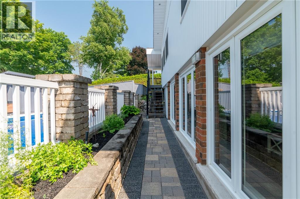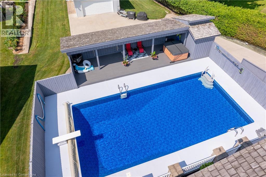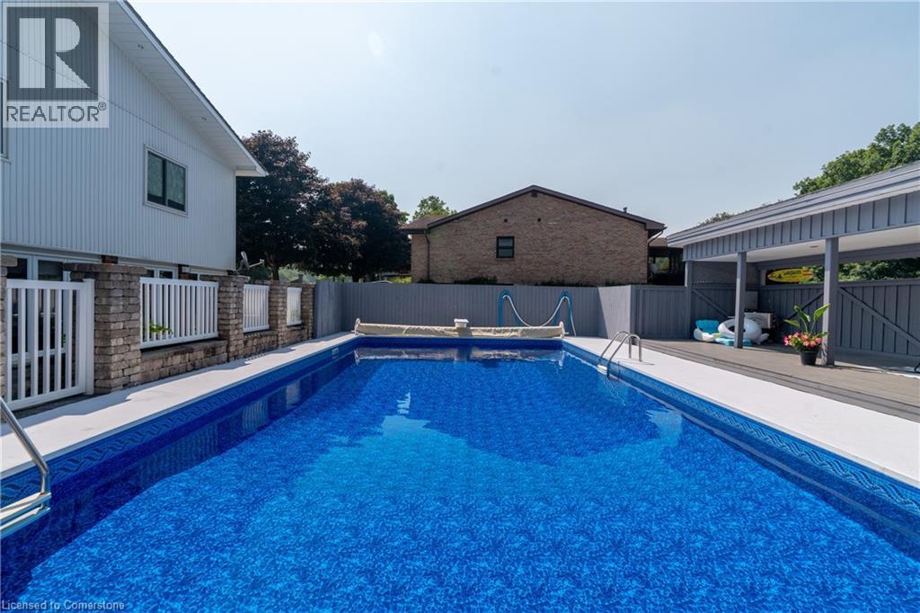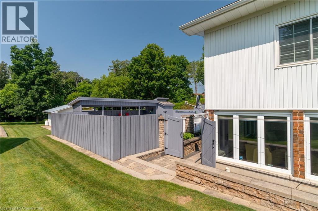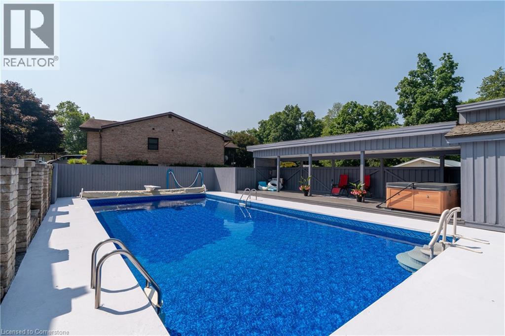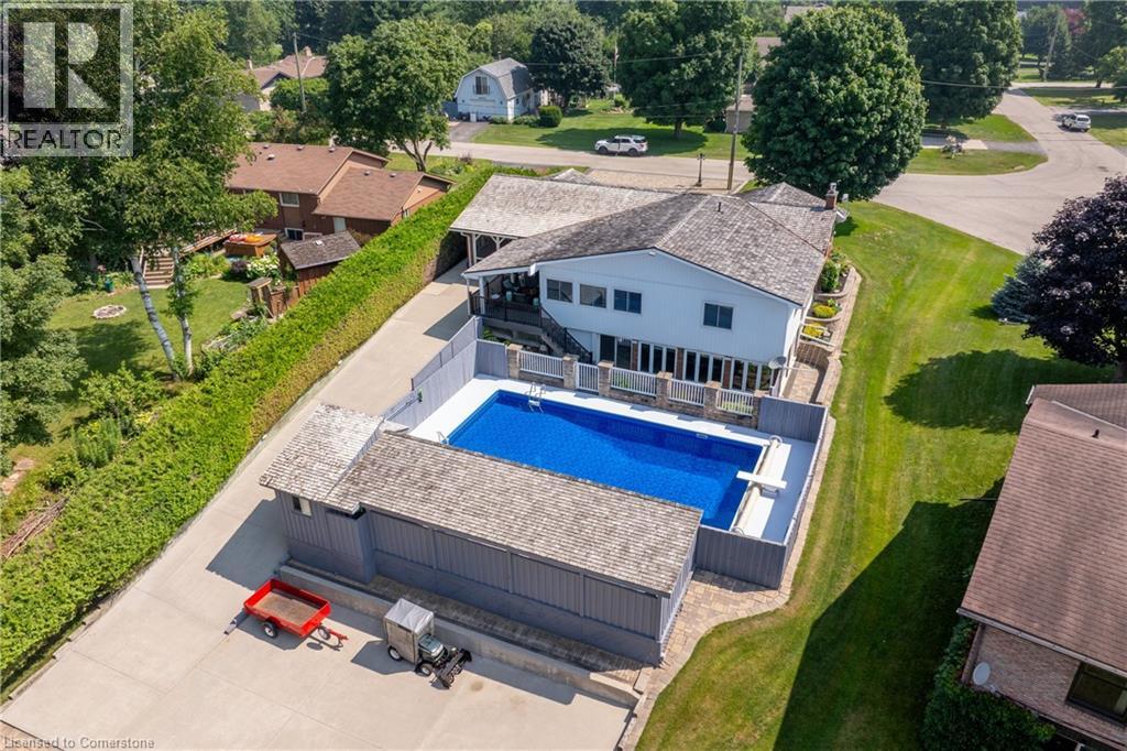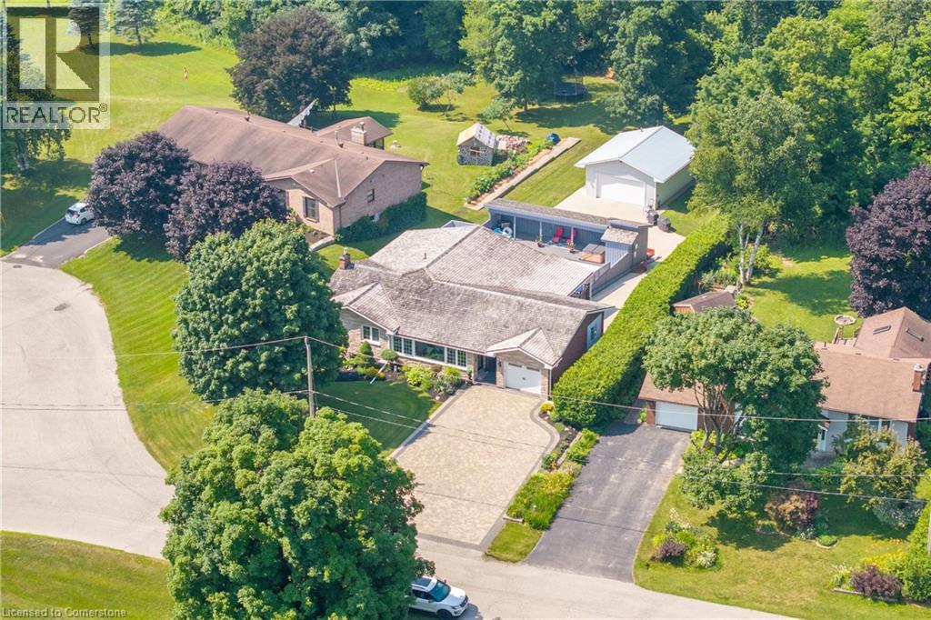 Immaculate Forest-Backed Home in Ayr Welcome to this beautifully updated home nestled on a quiet, tree-lined street in the heart of Ayr. Backing onto protected conservation land with walking trails and regular visits from deer and foxes, this property offers the perfect blend of peaceful nature and modern living. Step through the refreshed front entry (2020) into a warm and welcoming space. The remodeled kitchen (2016) is as functional as it is stylish, featuring freshly sprayed cabinetry (2023), soft-close doors, a pull-out spice rack, and updated appliances including a French door fridge, Bosch dishwasher, and modern range. Hardwood floors run throughout the bedrooms, complete with custom closet built-ins and California shutters on the main floor windows. The fully finished basement (2020) adds versatile living space, with a cozy gas fireplace (2021), new patio doors, laundry upgrades (2020), and a brand-new bathroom in 2025. The all-seasons sunroom leads to your private backyard oasis—featuring a 20x40 pool with a new liner, solar cover, and robotic vacuum (2025), a large covered composite deck (2019), and a cabana with hot tub for year-round relaxation. Additional highlights include a cedar shake roof with copper flashing, attached garage (by breezeway) with screen and French doors (used in summer for alfresco dining), an insulated and heated shop with power (new eavestroughs 2024), and a full irrigation system powered by a dedicated outdoor well. Concrete driveway and pad offer ample space for RV or boat storage, with discreet side access from the road. Enjoy a walkable lifestyle—steps from Victoria Park’s baseball diamond, new pickleball courts, the seasonal farmer’s market, local arena, curling club, and community centre. Friendly neighbours, holiday gatherings, and a short 12-minute drive to the charming town of Paris round out this incredible offering. This home is truly move-in ready—updated with care, designed for connection, and surrounded by nature. (id:46441)