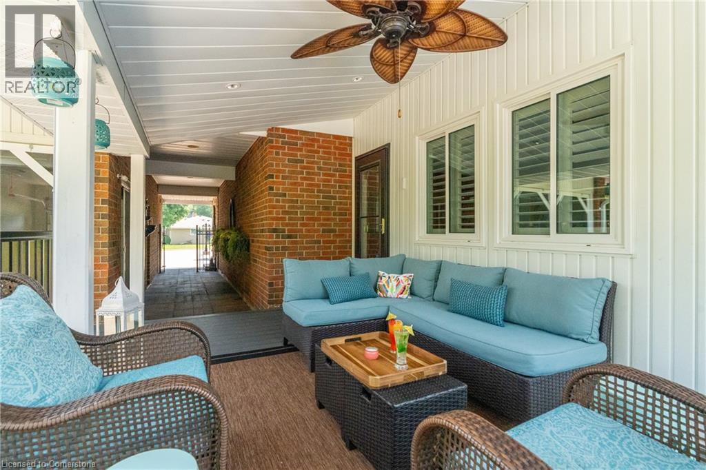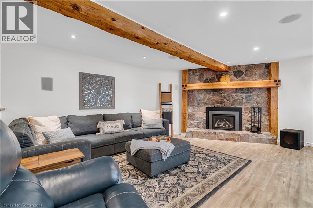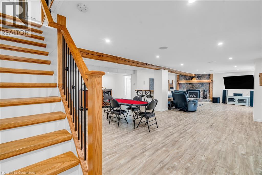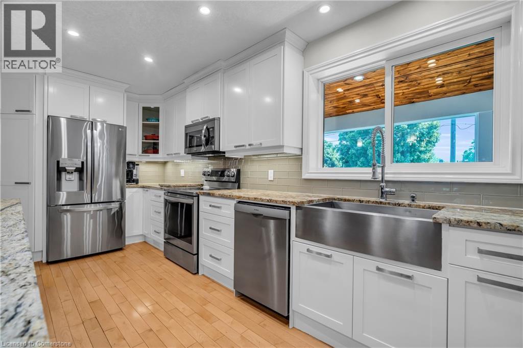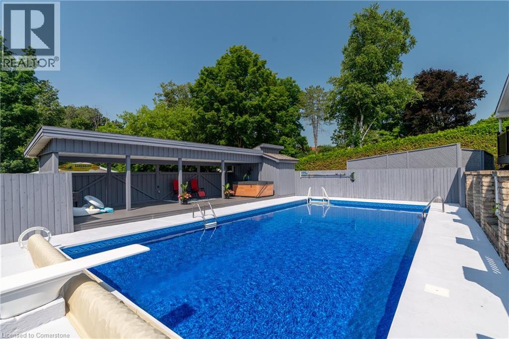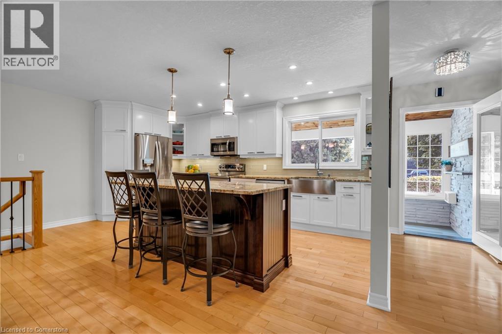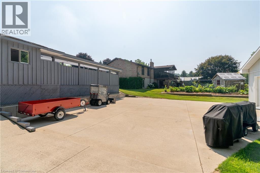 Immaculate Forest-Backed Home in Ayr Welcome to this beautifully updated home nestled on a quiet, tree-lined street in the heart of Ayr. Backing onto protected conservation land with walking trails and regular visits from deer and foxes, this property offers the perfect blend of peaceful nature and modern living. Step through the refreshed front entry (2020) into a warm and welcoming space. The remodeled kitchen (2016) is as functional as it is stylish, featuring freshly sprayed cabinetry (2023), soft-close doors, a pull-out spice rack, and updated appliances including a French door fridge, Bosch dishwasher, and modern range. Hardwood floors run throughout the bedrooms, complete with custom closet built-ins and California shutters on the main floor windows. The fully finished basement (2020) adds versatile living space, with a cozy gas fireplace (2021), new patio doors, laundry upgrades (2020), and a brand-new bathroom in 2025. The all-seasons sunroom leads to your private backyard oasis—featuring a 20x40 pool with a new liner, solar cover, and robotic vacuum (2025), a large covered composite deck (2019), and a cabana with hot tub for year-round relaxation. Additional highlights include a cedar shake roof with copper flashing, attached garage (by breezeway) with screen and French doors (used in summer for alfresco dining), an insulated and heated shop with power (new eavestroughs 2024), and a full irrigation system powered by a dedicated outdoor well. Concrete driveway and pad offer ample space for RV or boat storage, with discreet side access from the road. Enjoy a walkable lifestyle—steps from Victoria Park’s baseball diamond, new pickleball courts, the seasonal farmer’s market, local arena, curling club, and community centre. Friendly neighbours, holiday gatherings, and a short 12-minute drive to the charming town of Paris round out this incredible offering. This home is truly move-in ready—updated with care, designed for connection, and surrounded by nature. (id:46441)