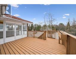 4-bdrm, 2-bath, 2200+ sqft, bungalow on an extra-deep ravine lot in a mature and desirable neighbourhood. The main floor offers 2 spacious bedrooms, a 4pc bathroom with a step-in shower, an eat-in kitchen with pantry, combined living and dining rooms (with crown moulding) where you can step out through oversized glass sliders to the elevated deck and Muskoka Room, with broad views over the ravine and forest. Downstairs, in the walk-out basement, is a great space for a possible in-law suite with 2-bdrms and a 3pc bathroom, large laundry room, high ceilings, a gas fireplace in the large family room, and sliding glass doors to the covered patio area. Outside, the lot is gently sloping from the front of the house to the back of the house, where it levels off for the remainder of the backyard... and backs onto a greenspace, with no possibility of future development. There is a covered front porch, double-wide paved driveway fitting 4 vehicles comfortably, and a double attached garage with mudroom leading into the kitchen. This ravine lot offers quick access (200m) to the South Monck hiking and biking trail system with over 9-kms in trails. The snowmobile trail is a distance away at the far end of Covered Bridge. The local playground is just a 300m stroll, and only 800m to shopping and dining. (id:46441)