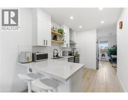 Step into this beautifully updated home offering a bright and modern space perfect for comfortable living. The open-concept main level features a welcoming living area with a large window, a stylish kitchen with white cabinetry, quartz counters, breakfast bar seating, stainless steel appliances, and a sleek tile backsplash. The dining area showcases exposed brick and opens directly to the backyard. Upstairs, you’ll find two sunny bedrooms with great closet space and a refreshed 4-piece bathroom. The finished lower level adds a cozy rec room, a full 3-piece bath with a walk-in shower, laundry with LG machines, and an additional den that’s ideal for storage or a quiet workspace. The fully fenced backyard backs onto Birch Park, offering a peaceful setting and extra privacy. Parking is available at the front, with an additional rear space on a concrete pad. Located close to transit, shopping, schools, and some of Hamilton’s favourite amenities, this home is ready for its next great tenant. (id:46441)