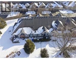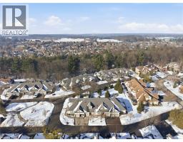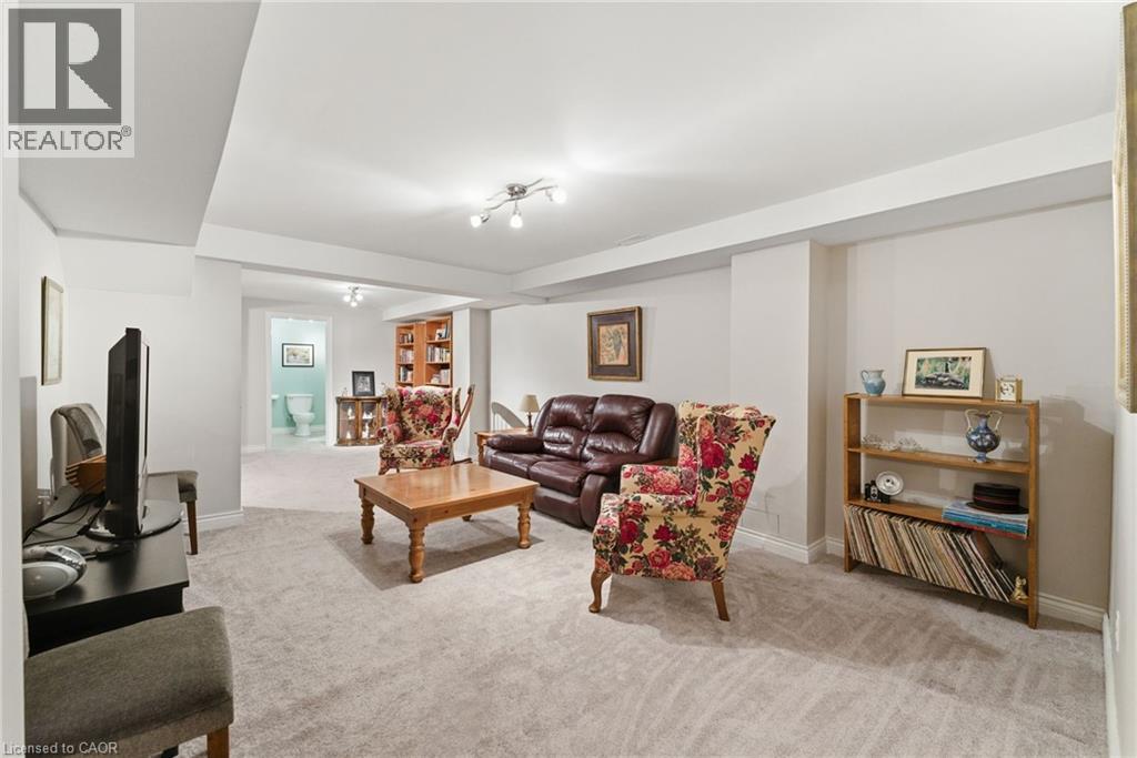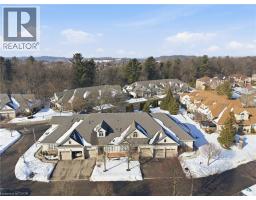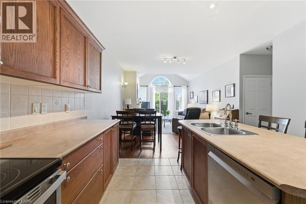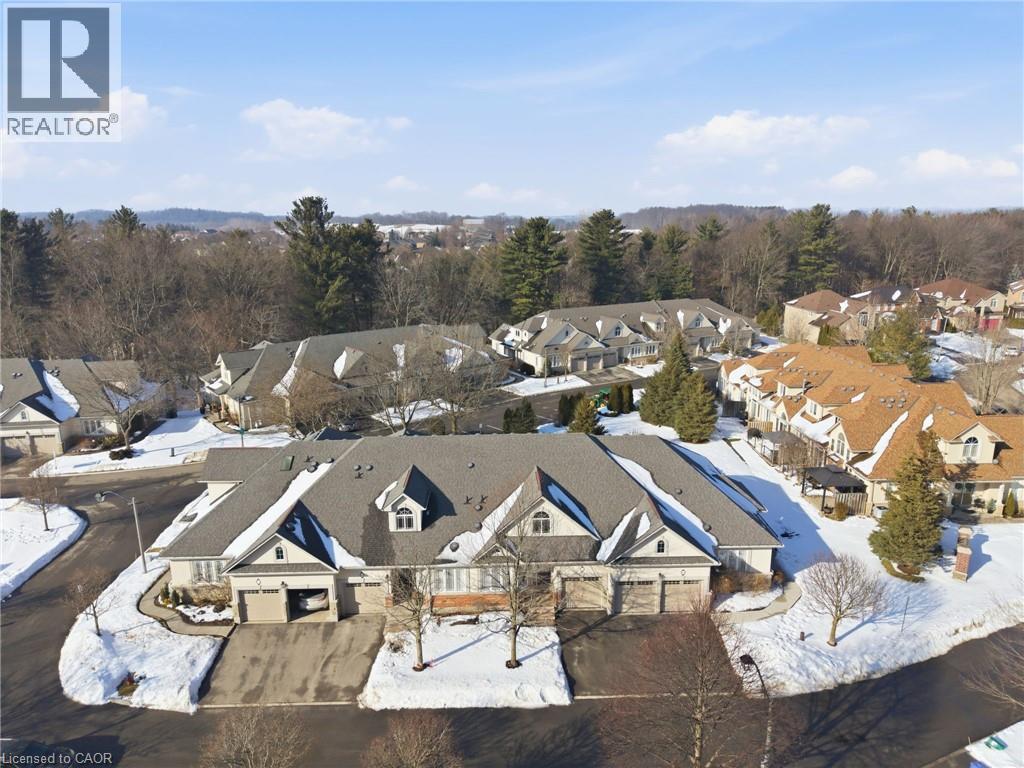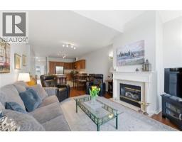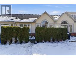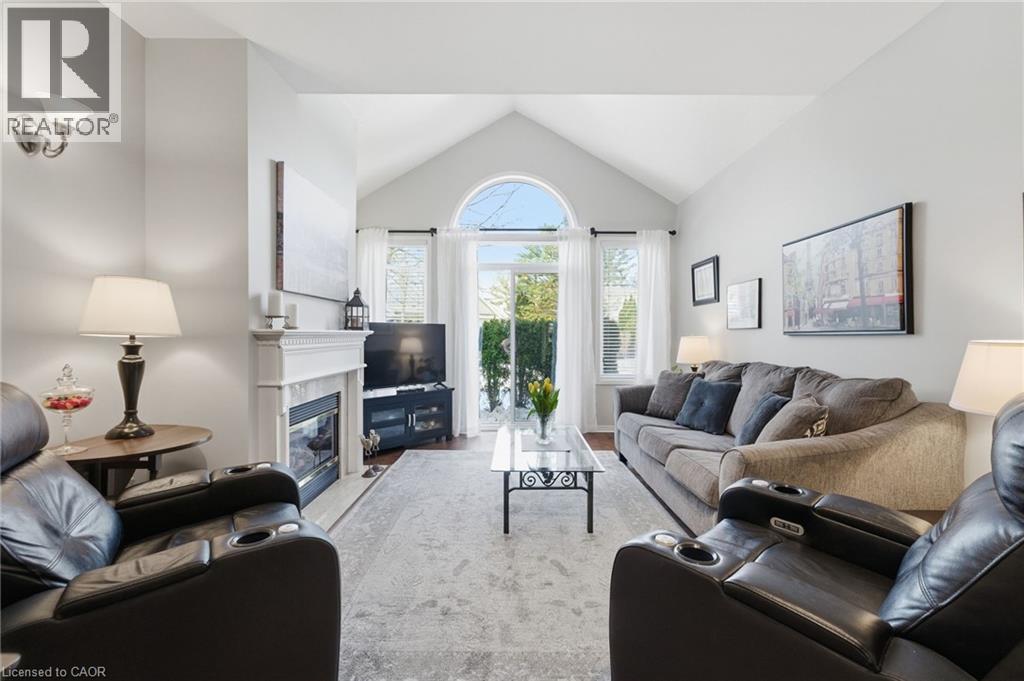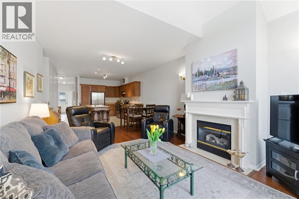 Welcome to effortless living in the heart of Ancaster! This beautifully maintained townhome offers the perfect blend of comfort, space, and convenience in a sought-after retirement complex. Bright and airy, the main level features an open-concept layout with vaulted ceilings, a gas fireplace, and oversized windows that fill the living room with natural light. The kitchen is designed for both everyday living and entertaining, showcasing abundant cabinetry, generous counter space, ceramic backsplash, pantry storage, and a breakfast bar island with seating. The primary suite is a true retreat with hardwood flooring, a walk-in closet, and a spacious 4-piece ensuite complete with stone countertop, separate tub, and shower. A second bedroom or office enjoys ensuite privileges and exceptional natural light. Main floor laundry adds everyday convenience. The fully finished lower level expands your living space with a large recreation room, an additional bedroom, a 3-piece bathroom with shower, and a utility/storage area - ideal for guests, hobbies, or multi-generational living. Additional highlights include: Neutral ceramic flooring in foyer, kitchen, and baths, hardwood flooring throughout main living areas, attached single garage with inside entry and storage shelving. Immaculately presented and move-in ready, this home offers outstanding value for buyers seeking low-maintenance living (cable, internet, common area upkeep, snow removal, landscaping, roof, driveways and roadways are all included in the reasonable condo fee!), without sacrificing space or style. WELCOME HOME! (id:46441)