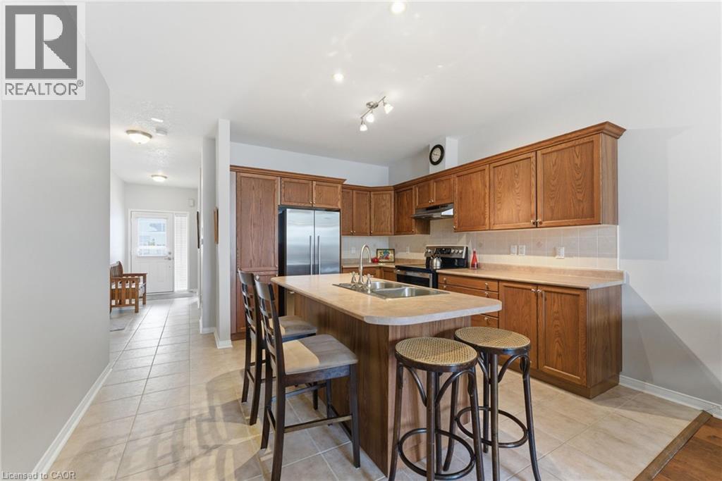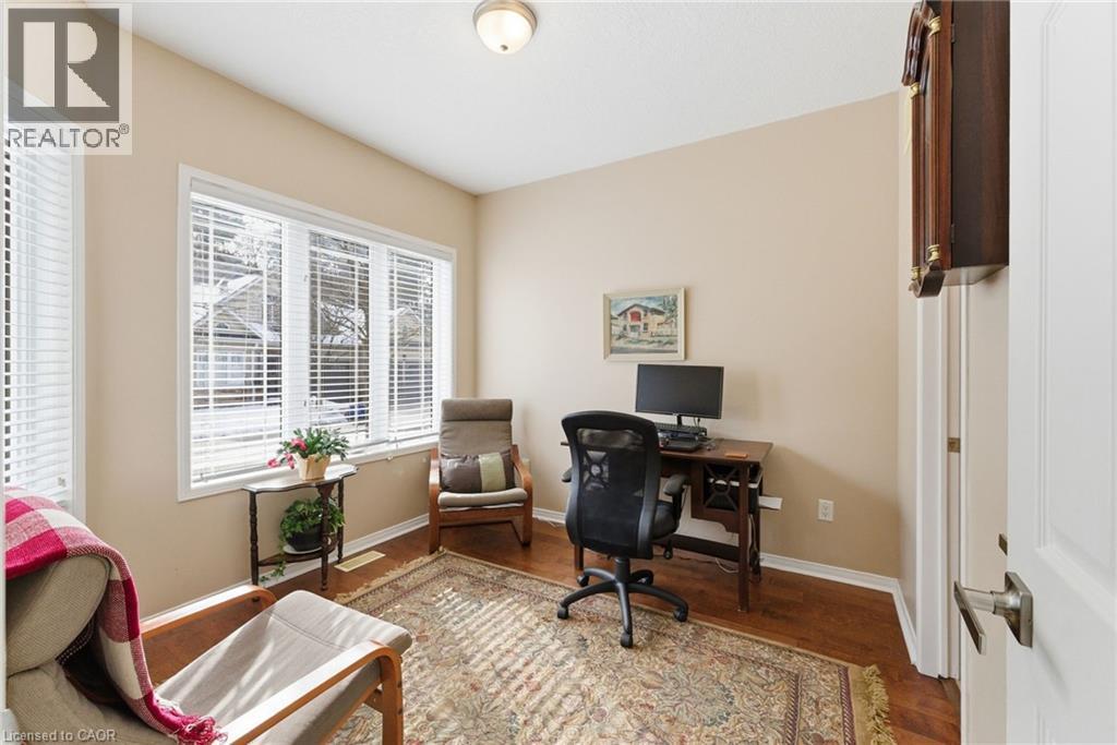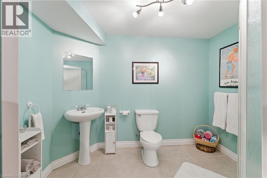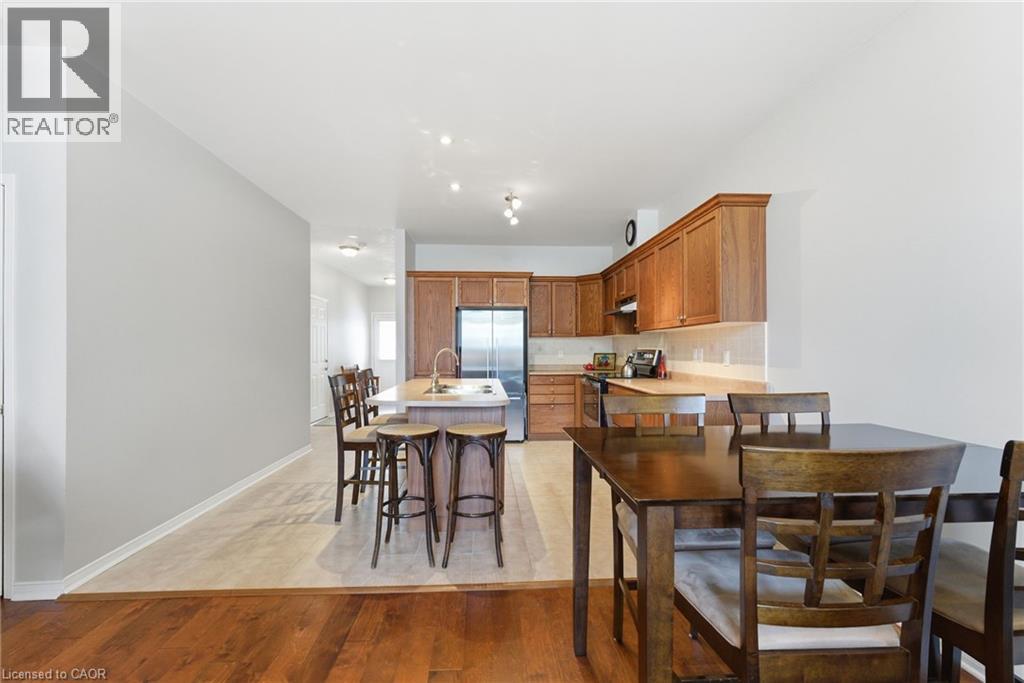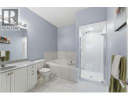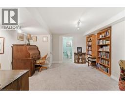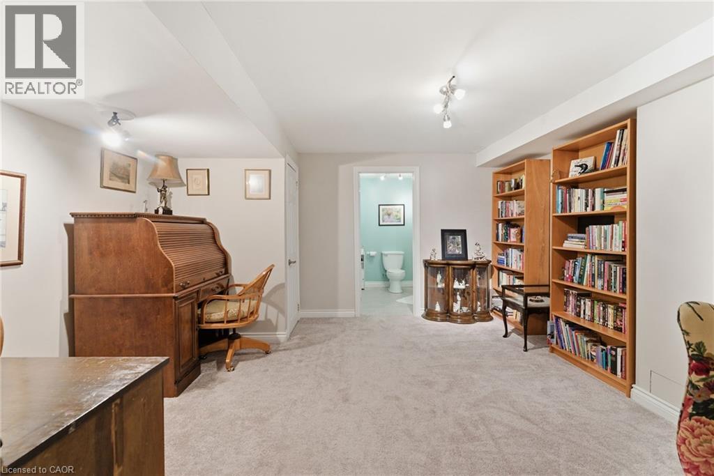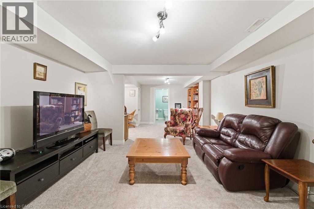 Welcome to effortless living in the heart of Ancaster! This beautifully maintained townhome offers the perfect blend of comfort, space, and convenience in a sought-after retirement complex. Bright and airy, the main level features an open-concept layout with vaulted ceilings, a gas fireplace, and oversized windows that fill the living room with natural light. The kitchen is designed for both everyday living and entertaining, showcasing abundant cabinetry, generous counter space, ceramic backsplash, pantry storage, and a breakfast bar island with seating. The primary suite is a true retreat with hardwood flooring, a walk-in closet, and a spacious 4-piece ensuite complete with stone countertop, separate tub, and shower. A second bedroom or office enjoys ensuite privileges and exceptional natural light. Main floor laundry adds everyday convenience. The fully finished lower level expands your living space with a large recreation room, an additional bedroom, a 3-piece bathroom with shower, and a utility/storage area - ideal for guests, hobbies, or multi-generational living. Additional highlights include: Neutral ceramic flooring in foyer, kitchen, and baths, hardwood flooring throughout main living areas, attached single garage with inside entry and storage shelving. Immaculately presented and move-in ready, this home offers outstanding value for buyers seeking low-maintenance living (cable, internet, common area upkeep, snow removal, landscaping, roof, driveways and roadways are all included in the reasonable condo fee!), without sacrificing space or style. WELCOME HOME! (id:46441)