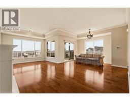 The highly desirable Wellington Model showcases sweeping views of downtown Dundas and the Escarpment, filling the space with natural light and a sense of openness. The thoughtfully designed open-concept layout features two generously sized bedrooms and two full bathrooms, ideal for comfortable everyday living or hosting guests. Elegant hardwood flooring and ceramic tile flow throughout, while the expansive kitchen is a true highlight - complete with abundant wall-to-wall cabinetry, ample counter space, and a spacious eating area perfect for casual dining or entertaining. Residents enjoy access to an impressive array of building amenities, including a party room, library, fitness centre, guest suite, workshop and even a convenient car wash station - offering both comfort and convenience right at your doorstep. A rare blend of location, lifestyle, and livability - this is Dundas condo living at its finest. (id:46441)