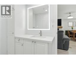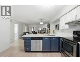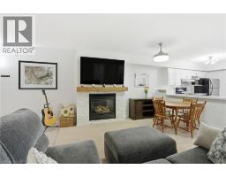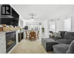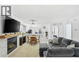 Welcome to this beautifully updated second-floor condo in a well-maintained low-rise building, offering the perfect blend of comfort, style, and convenience. This bright and spacious unit features two generously sized bedrooms and a full bathroom, ideal for first-time buyers, downsizers, or investors alike. The open-concept layout seamlessly connects the kitchen, dining, and living areas, creating a functional and inviting space for everyday living and entertaining. The modern kitchen is complete with sleek white cabinetry, stainless steel appliances, quartz countertops, and a classic subway tile backsplash. The living room is highlighted by a stunning feature wall with a cozy gas fireplace and mantle, adding warmth and character to the space. Enjoy the convenience of in-suite laundry, along with one underground parking space and a dedicated locker for additional storage. Stylish new flooring runs throughout the unit, and the bathroom also features a quartz countertop for a clean, contemporary finish. Step out onto your private balcony and take in the peaceful view of mature trees—perfect for relaxing after a long day. Located in a highly desirable area, you’re just minutes from the QEW, with shops, restaurants, and everyday amenities all within walking distance. Nature lovers will appreciate the nearby trails, offering the perfect escape for walking and outdoor enjoyment. A fantastic opportunity to own a move-in-ready condo in a prime location! (id:46441)