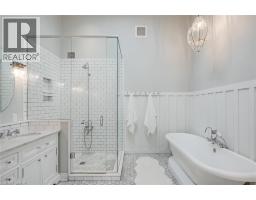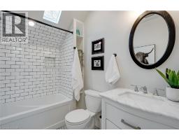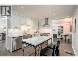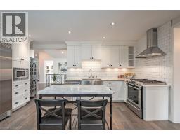 This tastefully renovated century farmhouse sits on one of the most sought after streets in downtown Burlington, offering a truly unique opportunity on a premium park like 60 x 181 ft lot adjacent to the waterfront trail and bike path. This 3 bedroom, 3.5 bathroom home features hardwood floors, exposed brick, skylights and pot lighting that add warmth and character throughout. The main level features a beautiful primary bedroom with a spa inspired 5 piece ensuite and a large walk in closet with stacked washer and dryer. The open concept kitchen includes stainless steel appliances, marble counters, tile backsplash and under cabinet lighting. Enjoy the formal dining room with exposed brick, vaulted ceiling and a rough in wet bar, perfect for entertaining. Along the back is an inviting family room with custom built ins, a charming office or reading nook, and a powder room overlooking the expansive fully fenced backyard. The upper level offers 2 bedrooms and a full bathroom, ideal for kids or guests. The finished lower level provides even more flexibility, featuring a comfortable rec room or home office along with a 3 piece bathroom. There is inside access to the spacious 1.5 car garage with a bonus fully finished kids retreat above, complete with electric fireplace and AC. The driveway provides parking for 4 cars.Steps to schools, parks, Lake Ontario, Spencer Smith Park, the YMCA, performing arts centre, library, shops and restaurants, this home offers an unmatched walk-able lifestyle in downtown Burlington. (id:46441)