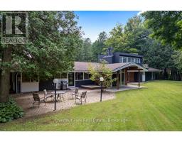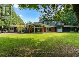Architectural elegance meets natural serenity in this 3,500 sq. ft. Frank Lloyd Wright-inspired bungalow, set on over 5 acres backing directly onto the Saugeen River. Swim, fish, kayak, paddleboard, canoe, or cross-country ski-right from your own backyard. A rare blend of timeless design, privacy, and year-round recreation, this home exemplifies Wright's philosophy of harmony between form and nature. Striking horizontal lines, vaulted ceilings, expansive windows, and rich natural materials frame breathtaking countryside views. The open-concept interior offers warmth and versatility from a chef's kitchen to a sun-drenched dining area and living room, with wood-burning fireplace, and a separate family room with a second wood burning fireplace. Multiple walkouts extend living space outdoors, where a tranquil riverfront patio invites you to relax and entertain in total seclusion.The expansive primary suite is a true retreat, featuring a spa-inspired ensuite, private patio, and loft area. Additional bedrooms provide flexibility for guests, family, or a home office. The elongated U-shaped driveway sets the home well back from the municipally maintained road, creating a safe and private setting ideal for children, pets and seniors alike. Designed for adaptability, the layout can easily accommodate additional ensuites or a finished basement. Located just outside Durham, this peaceful haven is steps from McGowan Falls and minutes from the art, food, and culture of the Grey Bruce region. Winter brings nearby Beaver Valley skiing, while warmer months offer hiking, camping, and boating on Lake Huron or Georgian Bay. A rare offering where architectural sophistication meets the beauty at the mouth of the Bruce Peninsula-just two hours from the GTA. (id:46441)