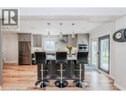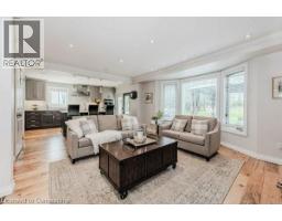 Welcome to this stunning country retreat in Puslinch. Nestled on over an acre of land, this beautifully updated home has been thoughtfully renovated from top to bottom with premium finishes and attention to detail. Upon entry, you're welcomed into a bright, open-concept living space filled with natural light. The custom chefs kitchen features a large quartz island and flows seamlessly into a striking living room anchored by a stone fireplace. Hand-scraped natural hickory engineered hardwood floors run throughout the main living areas, complemented by recessed lighting, custom built-ins, crown moulding on every level, and beautifully updated bathrooms. The fully finished basement, newly completed in 2024, adds valuable additional living and recreation space. Set on a spacious lot, this home is move-in ready and offers room for future possibilities. Experience the perfect balance of peaceful country living and contemporary elegance. (id:46441)
