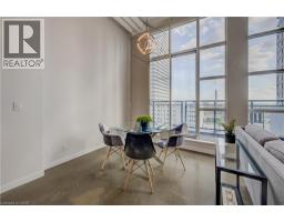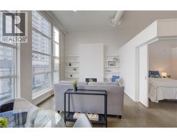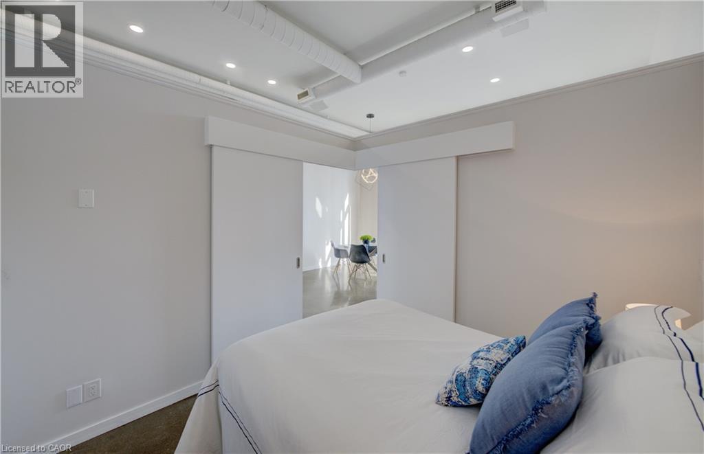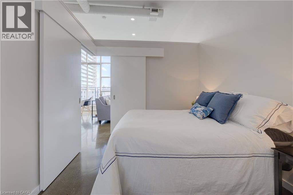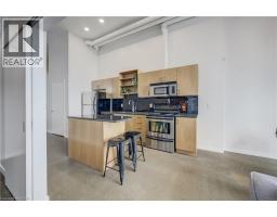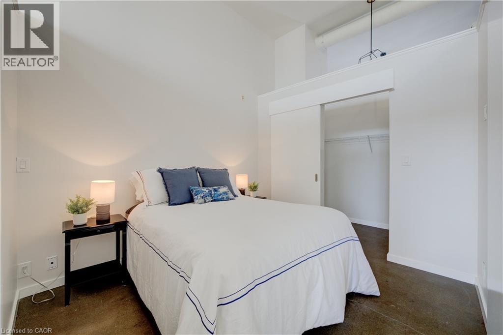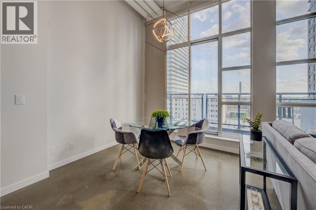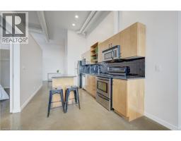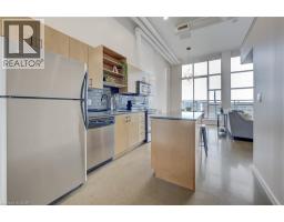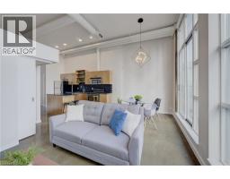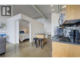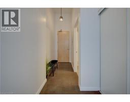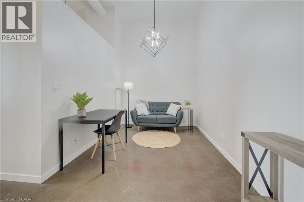 The epitome of a central DTK lifestyle the historic Kaufman Lofts at 404 King Street West, Kitchener, serve as a template for the dozens of condo developments that have followed in their footsteps over recent years, and still set an example that's very tough to beat today. Unit 524 presents a rarely-offered layout that maximizes every inch of this one-bedroom plus den, one-bathroom, 845 square-foot floorplan. A flood of south-western light, gleaming carpet-free polished concrete floors, towering 13-foot-plus ceilings, and a distinctly chic urban feel all help to characterize whats on abundant display here. Airy and open-concept, an extensive foyer leads visitors past the tidy four-piece washroom and into the den a sizeable, very flexible space which offers the chance for WFHers to enjoy a commute measured not in minutes, but seconds. Hang a left, and take in a stylish kitchen that provides plenty of prep space, taking special note of the gleaming granite countertops and island, as well as all that pot-lighting way above your head. An open living/dining space features plenty of built-in shelving on either side of the cozy electric fireplace (great for our colder months), plus a direct walkout to an exclusive and very long balcony five stories above Waterloo Regions primary artery of King Street. The private primary bedroom is your retreat, and boasts a generously proportioned walk-in closet of its own. With the LRT quite literally a stones throw from your unit, the forthcoming regional transit hub right around the corner, and dozens of prominent offices (including Google), retailers, restaurants, and civic amenities only a few minutes away by foot, its not hard to see why the DTK lifestyle appeals to so many. (id:46441)