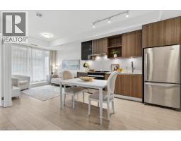 Discover upscale living at Distrikt Trailside with this stylish 1+den suite offering 595 sq ft of bright, open-concept space in coveted North Oakville. Designed for modern living featuring vinyl flooring, high-end finishes & a European-inspired kitchen with stainless steel appliances, sleek cabinetry & under-cabinet lighting. The versatile den is ideal for a home office, study or creative space, while the freshly painted interior adds a clean, move-in-ready touch. Enjoy 1 underground parking space plus resort-style amenities including a full-size gym, party & games rooms, rooftop terrace with BBQs, pet wash station & 24-hr concierge. Perfectly located steps to grocery stores, coffee shops, sports facilities, schools & restaurants, with seamless access to Hwy 403/407 & the GO. A rare opportunity for buyers seeking comfort, convenience & a vibrant Oakville lifestyle. (id:46441)