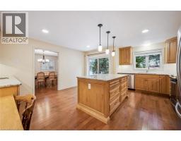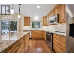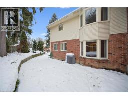 Welcome to one of only eight custom-built executive condominium townhomes in prestigious Westmount—offering over 2600 sq. ft. plus a finished basement, a large 2-car garage, and interlock brick driveway. Ideal location with quick access to Westmount Golf & Country Club, Belmont Village, Uptown Waterloo, and the Iron Horse Trail. This end-unit, former builder’s home, features a welcoming and spacious tiled foyer with sweeping staircase, updated hardwood flooring through the formal living room, dining room, and family room with gas fireplace. The updated kitchen has Brazilian granite counters, built-in appliances, a large island, and walkout to a private deck and landscaped yard. Upstairs you will find three generous bedrooms, including a primary suite with walk-in closet and updated spa-like ensuite that features a soaker tub, glass shower, and double vanity. Recent updates include a newer roof (2017) and brand-new windows throughout (2024). The finished lower level features a large rec room with wood-burning fireplace, 2-pc bath, workshop, and ample storage. Some photos feature virtual staging. (id:46441)