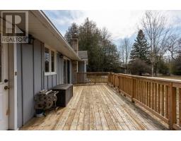 Welcome to this executive style 3-bedroom, 2-bath bungalow offering comfortable main-floor living on a large, private, park-like lot, a rare combination of privacy and convenience in an excellent location down Balmy Beach Road. With both municipal water and natural gas, this well-maintained home features an attached 2-car garage and beautiful natural exterior finishes. Inside, the bright living room showcases hardwood floors, the kitchen overlooks the spacious backyard featuring oak cabinetry and offers a warm and functional space for everyday living. A cozy family room with a brick accent wall creates the perfect place to relax. The main floor also includes a versatile office/den, mudroom with laundry, and three bedrooms, including a primary bedroom with a private 2-piece ensuite. A 3-piece bathroom with a new toilet and shower completes the main level. Step outside to enjoy the new deck, greenspace behind the home, and a right-of-way access to the bay across the road, ideal for enjoying nearby waterfront views and outdoor recreation. Two additional storage sheds provide extra space for tools and seasonal items. A wonderful opportunity for those seeking privacy, space, and easy one-level living in a desirable setting-this home is ready to be enjoyed. (id:46441)