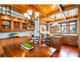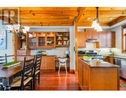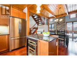 Experience refined chalet living with breathtaking views of Craigleith Ski Club in this immaculate Sierra Woodlands townhome. Featuring the coveted Redwood floor plan and over $100,000 in premium upgrades, this luxury residence blends timeless alpine charm with modern sophistication. Warm wood flooring, custom trim, and designer shutters flow throughout the home. The chef's kitchen and dining area impress with a tongue-and-groove ceiling accented by post-and-beam detailing, granite countertops, stainless steel appliances, and a breakfast bar-perfect for entertaining after a day on the slopes. A dramatic floating staircase with glass railings leads to the upper level, enhancing the home's open, contemporary feel. The living room is anchored by a stunning floor-to-ceiling stone gas fireplace and opens directly to an oversized deck complete with a private hot tub-ideal for year-round relaxation. The entry-level recreation room, accessed from the oversized double garage and provides flexible space for guests or family gatherings. This 1,746 sq. ft. Blueski George Townhome is offered fully furnished and showcases a classic post-and-beam chalet aesthetic. Enjoy a spacious sun deck over the garage, additional outdoor living space, and a layout designed for both comfort and entertaining. Perfectly located just minutes from Craigleith, Alpine Ski Club, Blue Mountain Village, Georgian Bay, the Georgian Trail, golf courses, beaches, and the shops and dining of Collingwood and Thornbury. Outdoor enthusiasts will love the nearby hiking, biking, cross-country skiing, tennis courts, and seasonal access to the community outdoor pool. This freehold semi-detached home offers the ease of condo living, with the condo fee covering all exterior grounds maintenance year-round, including snow removal and landscaping. A rare opportunity to own a turn-key luxury chalet in one of the area's most sought-after locations-this is truly a must-see (id:46441)