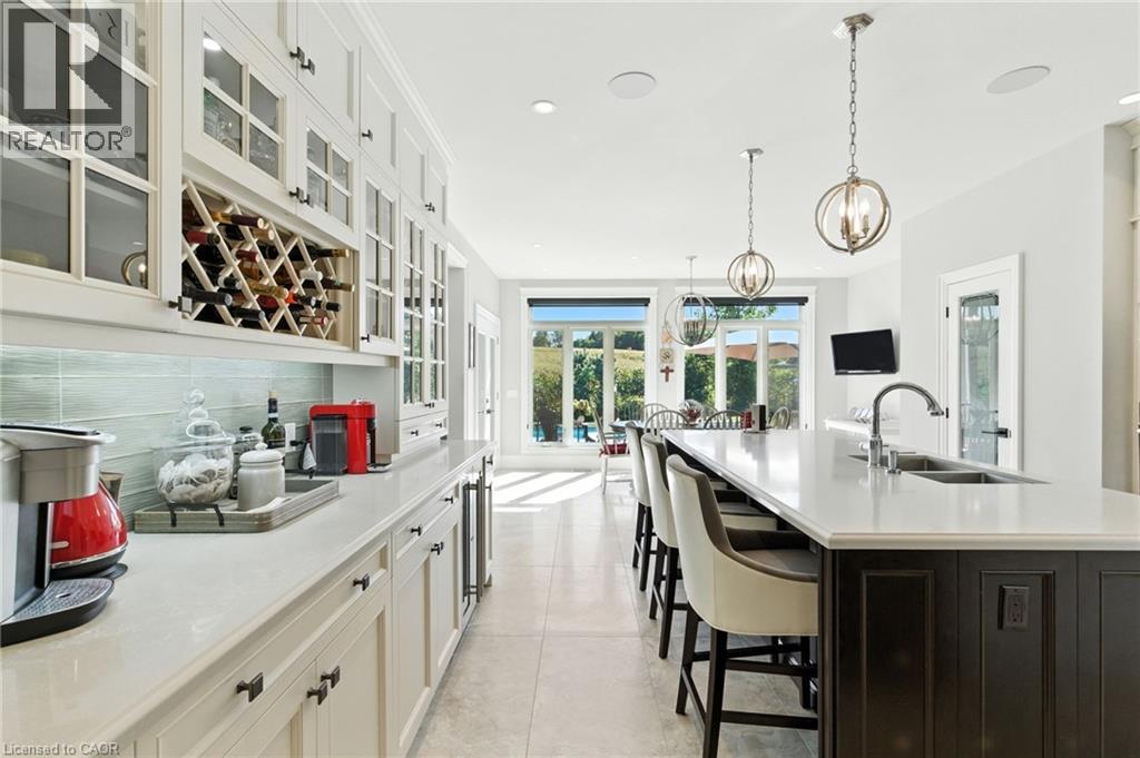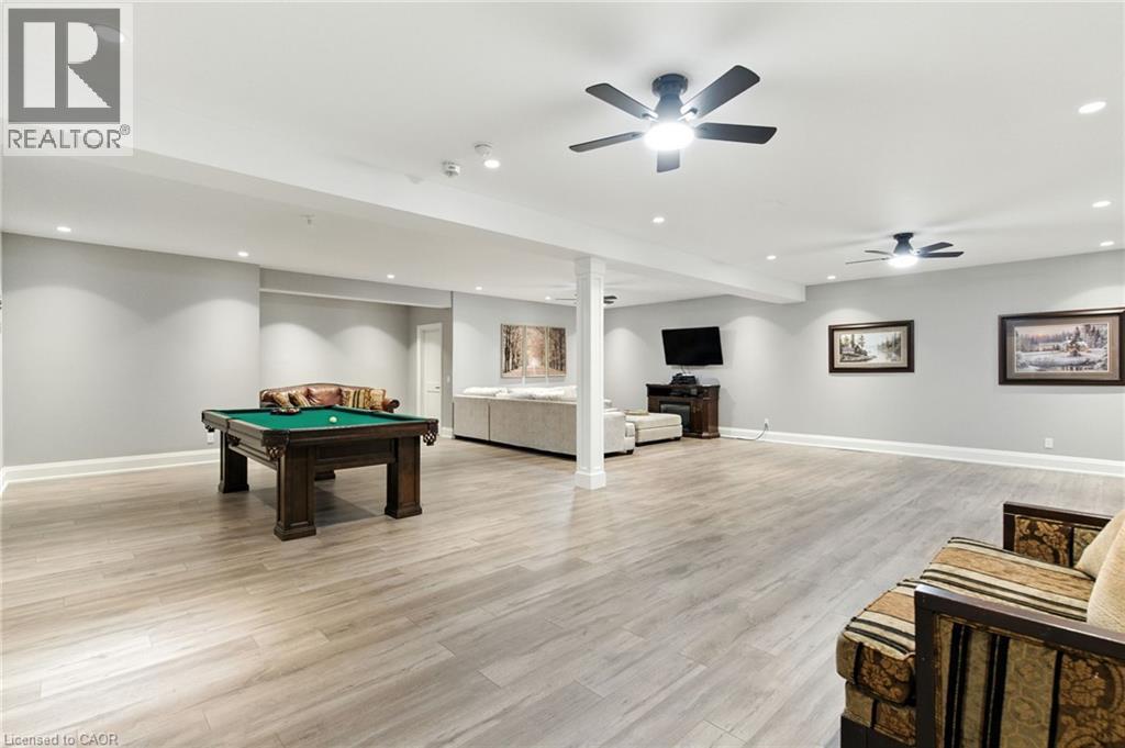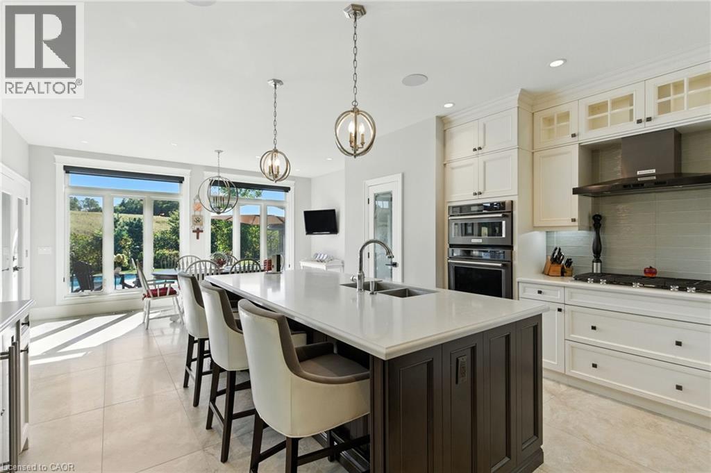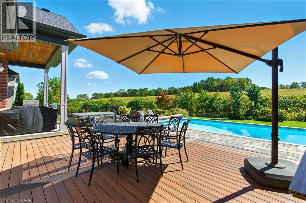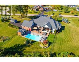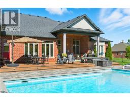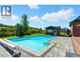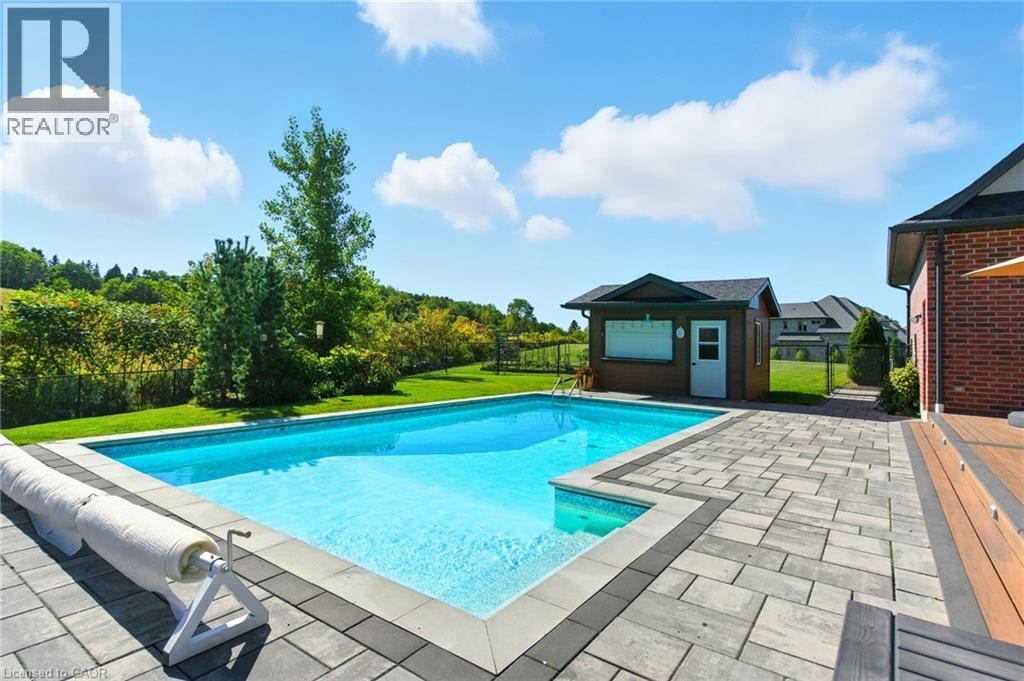 Welcome to 41 Shakespeare Road in the desirable Greensville community. This stunning custom-built bungalow is set on over 1.5 acres and offers approximately 5,000 square feet of finished living space. The property features landscaped front and rear yards with inground irrigation, an inground saltwater pool, an enclosed pool house and countless upgrades – an ideal choice for growing families or anyone seeking privacy. Inside, the home offers 3+2 bedrooms and 3.5 baths with a spacious open-concept layout. The eat-in kitchen includes upgraded cabinetry, quartz countertops, a finished backsplash, a walk-in pantry and ample room to entertain. An adjoining mudroom provides access to the rear yard and the 4-car garage. The kitchen flows into the great room, which boasts soaring 11+ foot ceilings, a natural gas fireplace and stunning views of the rear yard. The formal dining room features a dramatic accent wall and is well-suited for larger occasions. The main floor also includes an office/bonus room, two guest bedrooms with a shared bath and linen closet. The private primary wing and a large laundry room complete the level, offering a luxurious suite with a walk-in closet and spa-like ensuite. The finished lower-level with 9-foot ceilings adds two more bedrooms, a full bath, gym, and a spacious recreation room ready for your personal touch. Ample storage and quality finishes throughout highlight the no-expense-spared design. Outdoors, enjoy a landscaped lot with a fenced pool area, stone patio, composite deck and a pool house with electrical service. Parking is available for over 10 cars, with room to expand. This is a rare opportunity to own in an exclusive enclave of homes, ideally located near amenities, school, parks and more. Don’t be TOO LATE*! *REG TM. RSA. (id:46441)