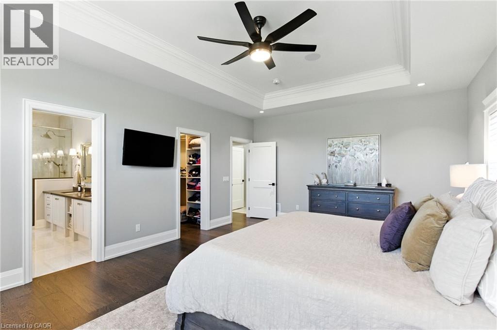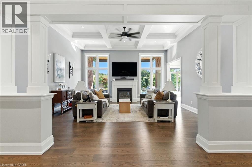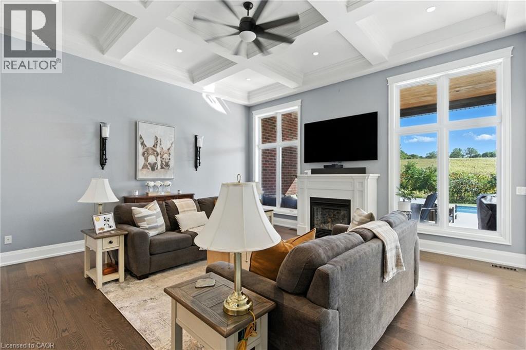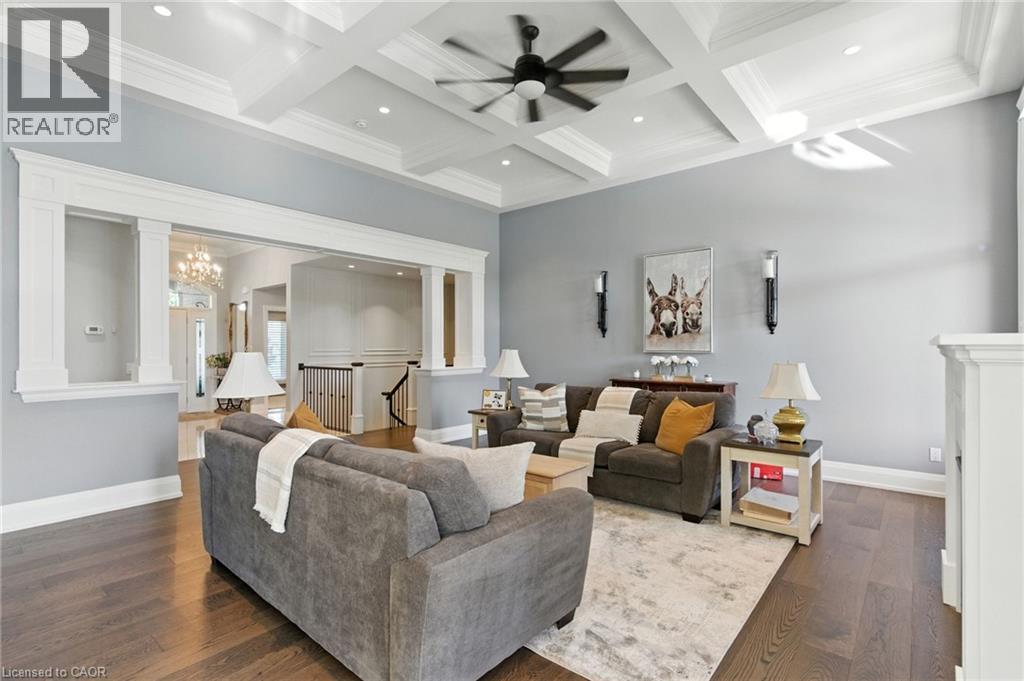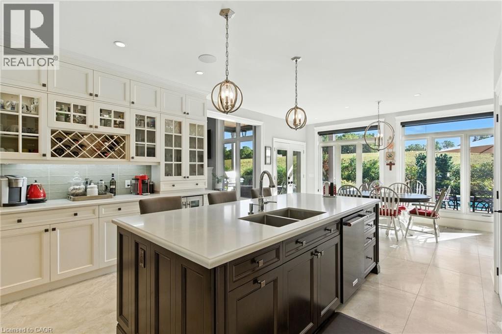 Welcome to 41 Shakespeare Road in the desirable Greensville community. This stunning custom-built bungalow is set on over 1.5 acres and offers approximately 5,000 square feet of finished living space. The property features landscaped front and rear yards with inground irrigation, an inground saltwater pool, an enclosed pool house and countless upgrades – an ideal choice for growing families or anyone seeking privacy. Inside, the home offers 3+2 bedrooms and 3.5 baths with a spacious open-concept layout. The eat-in kitchen includes upgraded cabinetry, quartz countertops, a finished backsplash, a walk-in pantry and ample room to entertain. An adjoining mudroom provides access to the rear yard and the 4-car garage. The kitchen flows into the great room, which boasts soaring 11+ foot ceilings, a natural gas fireplace and stunning views of the rear yard. The formal dining room features a dramatic accent wall and is well-suited for larger occasions. The main floor also includes an office/bonus room, two guest bedrooms with a shared bath and linen closet. The private primary wing and a large laundry room complete the level, offering a luxurious suite with a walk-in closet and spa-like ensuite. The finished lower-level with 9-foot ceilings adds two more bedrooms, a full bath, gym, and a spacious recreation room ready for your personal touch. Ample storage and quality finishes throughout highlight the no-expense-spared design. Outdoors, enjoy a landscaped lot with a fenced pool area, stone patio, composite deck and a pool house with electrical service. Parking is available for over 10 cars, with room to expand. This is a rare opportunity to own in an exclusive enclave of homes, ideally located near amenities, school, parks and more. Don’t be TOO LATE*! *REG TM. RSA. (id:46441)