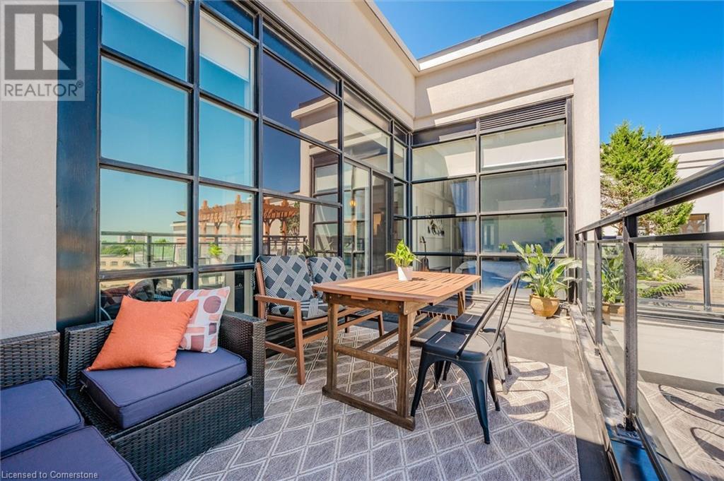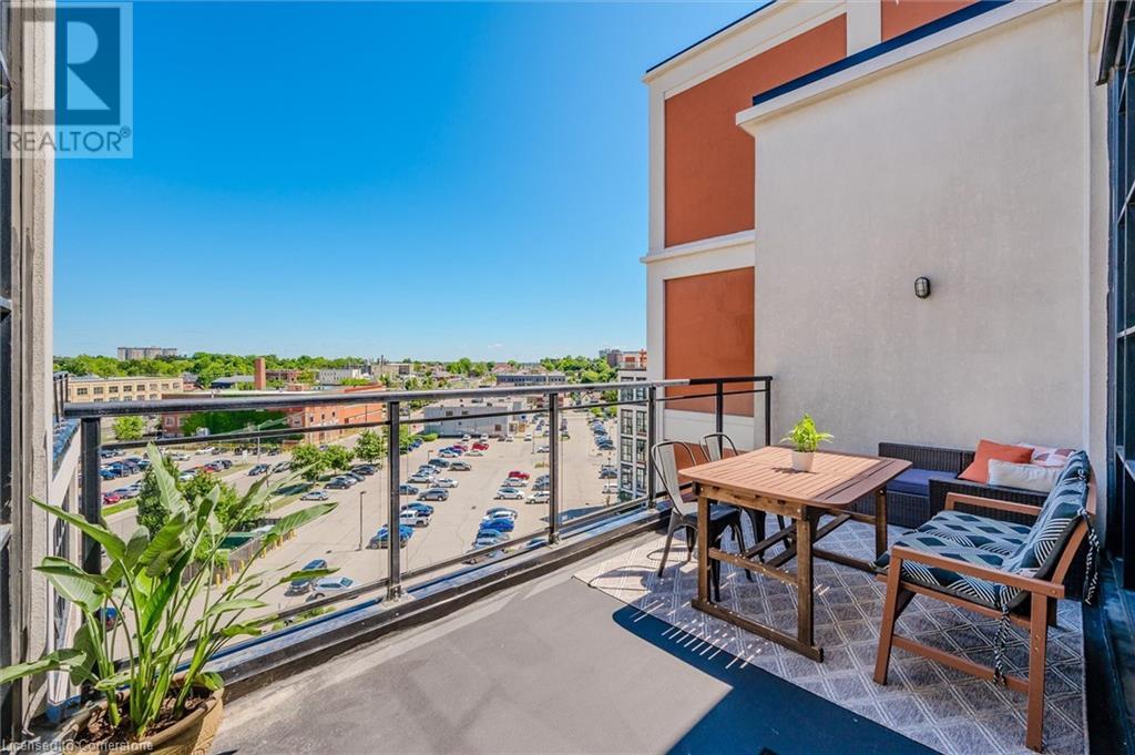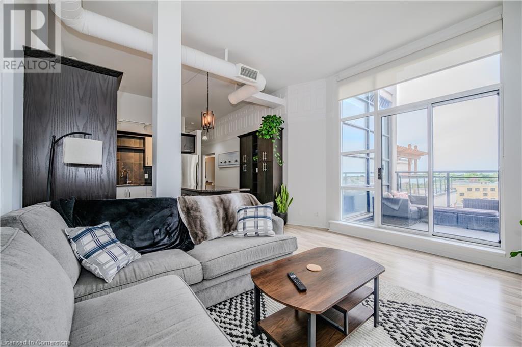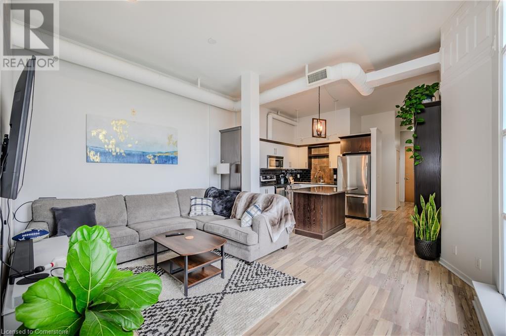 $1,237.83 MonthlyWelcome to Unit 609 at The Kaufman Lofts, a beautiful penthouse condominium with a central location. Set within a historic facade of exposed concrete and brick, this spacious loft offers an ideal blend of industrial charm and modern sophistication. Inside, you'll find a generous and 976 square foot floor plan featuring 11-foot ceilings, two bedrooms, two bathrooms, in-suite laundry, and an expansive 19’ x 19’ private terrace — perfect for relaxing or entertaining. The open-concept living space includes an eat-in kitchen with modern finishes that overlooks the bright living area and terrace. Floor-to-ceiling windows flood the space with natural light, creating an airy and inviting atmosphere. The primary suite offers a spacious walk-in closet and a luxurious 4-piece ensuite bathroom. The versatile second bedroom easily accommodates a queen or king bed and also works beautifully as a home office. Rare for downtown apartments, this unit offers two parking spaces and has the added convenience of a storage locker. Located just minutes from Victoria Park, restaurants, the Google offices, and the University of Waterloo and Wilfrid Laurier graduate campuses, this location is ideal for professionals and academics. Looking to the future, you'll be directly across from Waterloo Region’s upcoming transit hub, offering seamless connections to GO Transit, VIA Rail, and the ION Light Rail, linking the Waterloo-Toronto Innovation Corridor with two-way, all-day service. (id:46441)