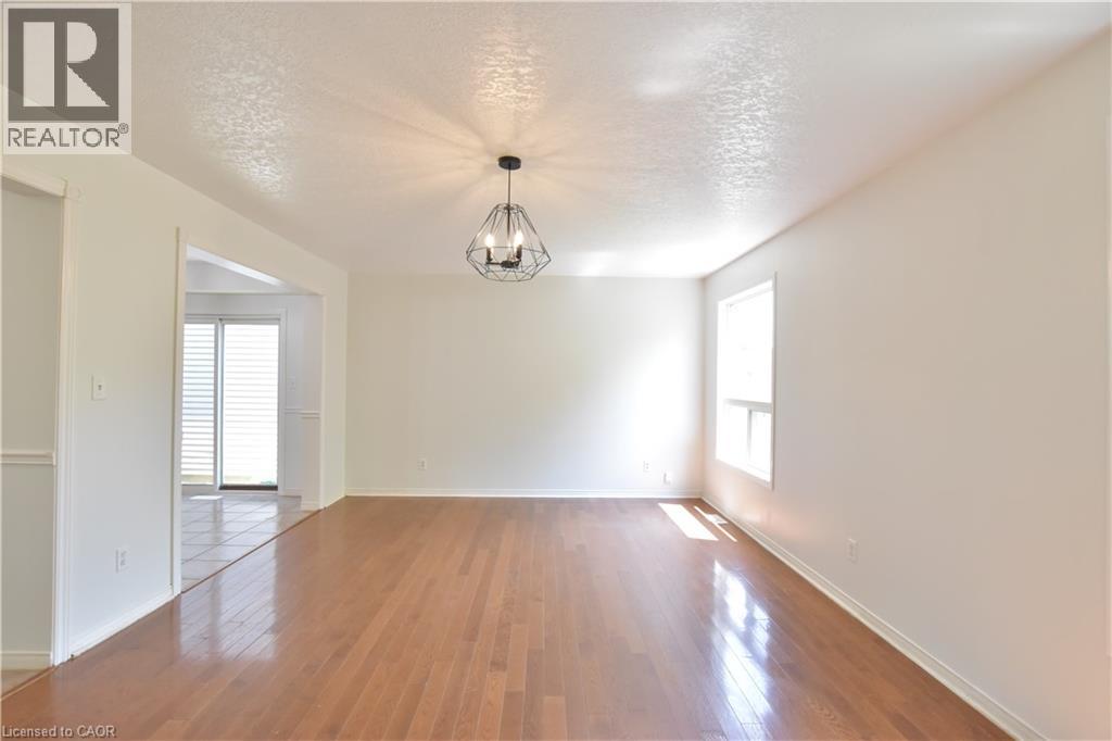 Nestled in the highly desirable Laurentian Hills neighborhood, this charming 3-bedroom, 3-bathroom detached home offers incredible convenience. You're just minutes from Highway 8, Sunrise Shopping Centre, Williamsburg Town Centre, the Williamsburg and Country Hills Community Centres, Good Life Fitness, and many other amenities. This freshly renovated home is move-in ready! Enjoy brand-new paint throughout – ceilings, walls, doors, and trim. Key updates include a roof replacement (April 2024) and a new hot water heater installed just this year (April 2025). Step inside to a bright, open-concept main floor. The spacious family room faces south, bathing the space in natural sunlight year-round. Gleaming oak hardwood floors flow throughout. The well-appointed kitchen features gorgeous new quartz countertops on three sides, classic oak cabinetry, stainless steel refrigerator, black stove, and dishwasher. A stylish breakfast area adds to the cozy, inviting atmosphere – perfect for family time. Sliding patio doors lead out to a generous back and side yard. Upstairs, you'll find a carpet-free oasis. The generous master bedroom boasts a large walk-in closet, complemented by two additional good-sized bedrooms. Oak hardwood continues in the hallway, accented by an elegant railing. A refreshed 4-piece bathroom features a brand-new vanity topped with gorgeous quartz and includes a convenient linen closet. The spacious, fully finished basement is a true highlight. It features a huge recreation room anchored by a cozy gas fireplace and a sleek, brand-new 3-piece bathroom. This modern bathroom includes a glass-door shower with stylish tile surround, a popular new vanity with stunning quartz countertop, and a new toilet. You'll also find a dedicated laundry/equipment room with washer and dryer, plus a cold storage room. (id:46441)