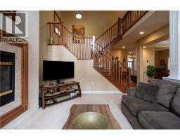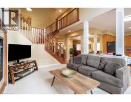 Spectacular Meadowlands of Ancaster! This beautiful 4-bedroom home showcases exceptional quality, upgrades, and a unique layout. Features include 9' ceilings on the main level, a dramatic 2-storey vaulted family room with gas fireplace, and hardwood flooring throughout (except the family room). The elegant dining room offers a coffered ceiling with crown moulding and recessed lighting. Additional highlights include a solid oak staircase, California knockdown ceilings, exposed aggregate front porch and driveway trim, and a patio deck perfect for entertaining. Conveniently located near shopping, schools, scenic areas, and quick access to Hwy 403 and the LINC, Tenants are responsible for all utilities and the rental cost of the water heater. A minimum one-year lease is required. The landlord prefers non-smokers and no pets. (id:46441)