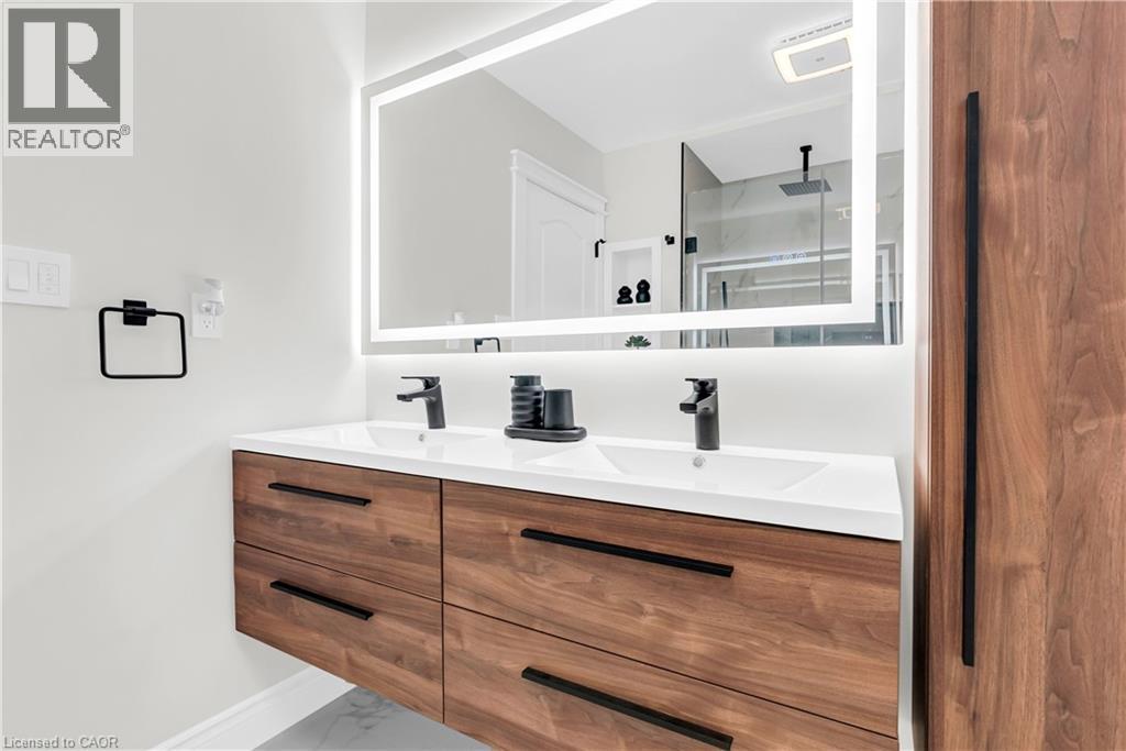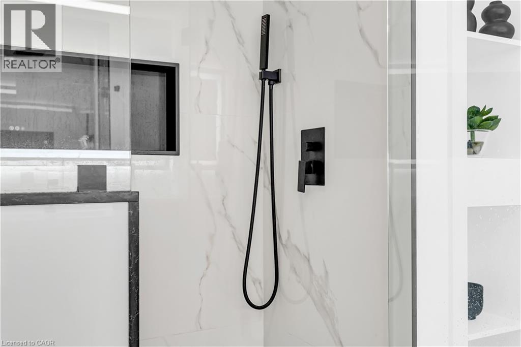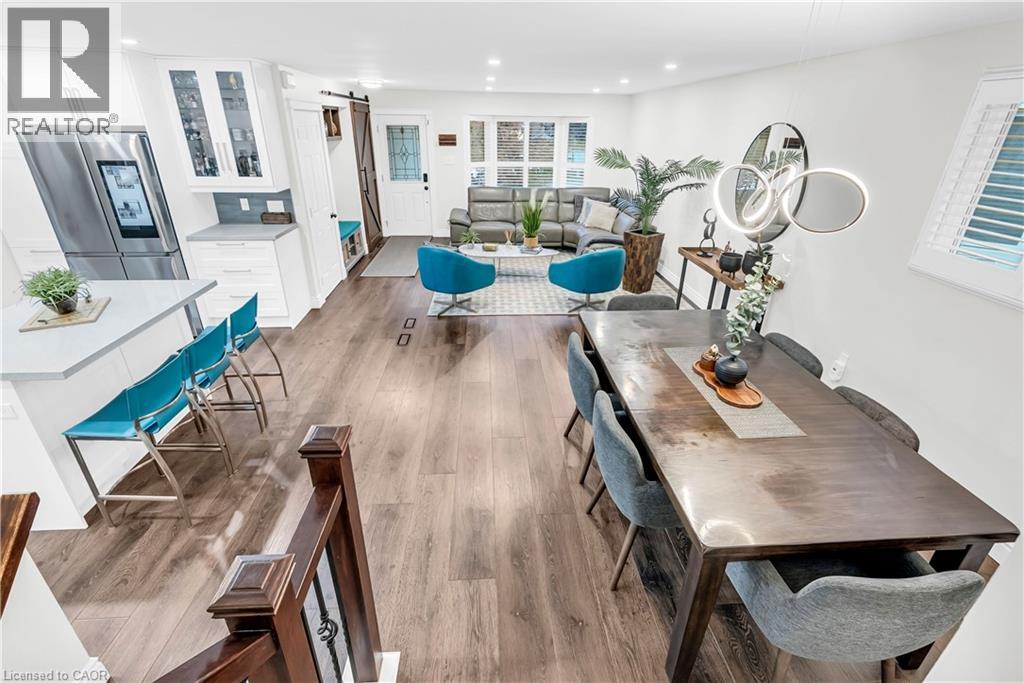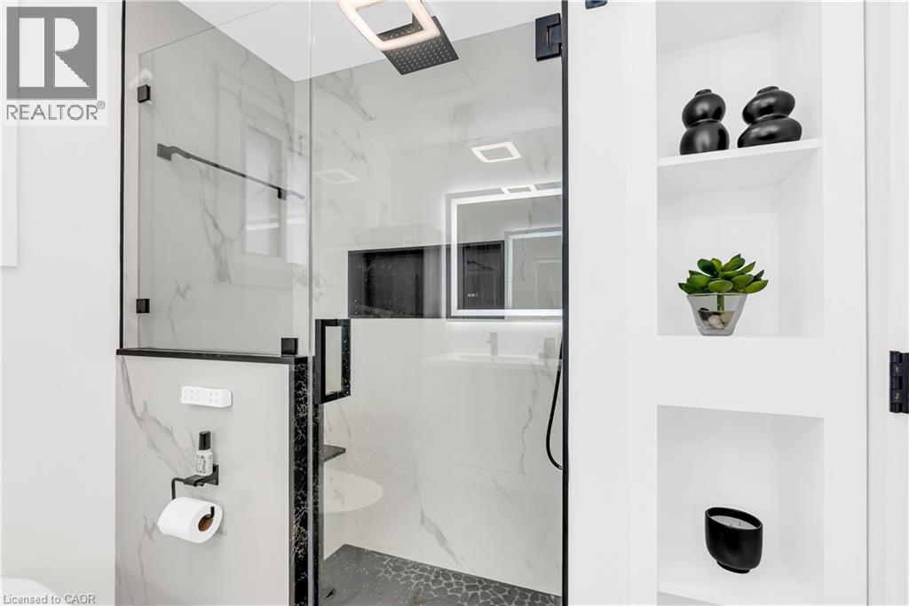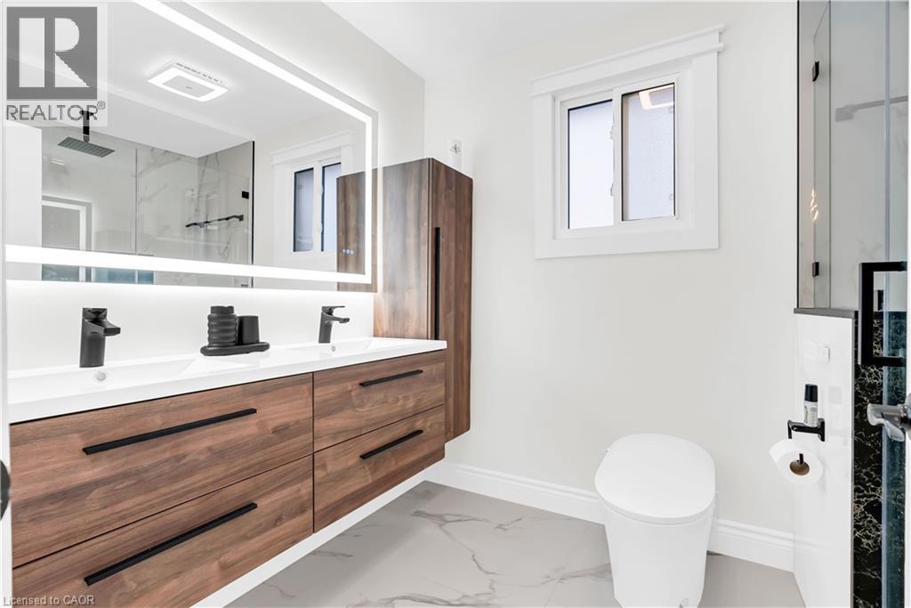 This beautifully renovated back split bungalow offers the perfect combination of comfort, technology, and style for a growing family. Featuring 3+1 bedrooms and 2 full bathrooms, the home is designed with an open layout and modern finishes throughout. From the moment you step inside, you’ll feel the openness with new hardwood floors, a bright open-concept design, and a brand new white kitchen with plenty of cabinetry, quartz countertops, stainless steel appliances, and pot lighting. Freshly painted in soft neutral tones, the home flows effortlessly from the kitchen to the dining area and into the formal living room, creating an inviting space for family gatherings and entertaining. The oversized garage includes a new furnace, EV charger setup, and ample room for hobby enthusiasts. A few steps up, the bedroom level features new flooring and a fully renovated modern bathroom with a standing shower, double vanity, and smart toilet. The first lower level offers a large family or recreation room, ideal for relaxing, working from home, or a game area, along with a guest bedroom and a second full bath, perfect for in-laws or visitors. The bonus lower level provides even more flexibility, with space for a gym, hobby, or meditation room, plus a smart laundry area with high-efficiency appliances and integrated security cameras. The entire home is smart controlled, allowing you to manage lighting, appliances, temperature, and entry systems remotely from your smartphone for ultimate comfort and convenience. Outside, enjoy a private backyard retreat featuring an on-ground pool, double sitting areas, outdoor cooking station, and a dedicated entertaining space with an extra storage shed. Conveniently located with easy access to the Red Hill and the Lincoln Alexander Parkway, this superb East Mountain location is close to all amenities, parks, movie theatres, and more. (id:46441)