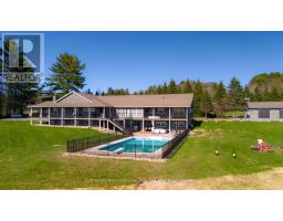 TURNKEY! Welcome to your private Muskoka retreat, perfectly positioned on 4.92 acres with 675 feet of pristine shoreline and southwest exposure on quiet Weeduck Lake. Just minutes from Huntsville, this turn-key property offers a rare blend of privacy, comfort, and convenience, which is ideal as a seasonal escape or a full-time residence. This thoughtfully laid-out home features three bedrooms on the main level and four additional bedrooms on the lower level. A self-contained one-bedroom, one-bath in-law suite sits above the attached three-car garage, offering privacy for guests or extended family. The open-concept kitchen features a granite island, double wall ovens, and an oversized fridge and freezer, flowing into a panoramic Muskoka room and a dining area with built-in cabinetry and a charming brick fireplace. Step outside to the covered deck, perfect for dining or relaxing in all seasons. Enjoy a spacious family room and a dedicated games room on the lower level. Walk out to your stone patio and private hot tub, or unwind by the sparkling inground pool, set against a lush forest backdrop. A separate 3-car detached garage (1,350 sq ft) adds ample space for recreational gear or workshop use. Recent upgrades include a new septic system (2025). Other home systems include on-demand propane water heater, UV water filtration system, water softener, and central air. At the water's edge, a 200-foot dock invites swimming, paddling, or fishing with stunning sunsets across the lake every evening. This is Muskoka living. (id:46441)