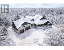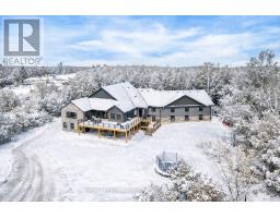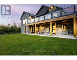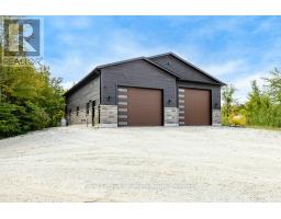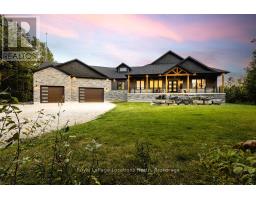 Welcome to a truly rare private estate set on 92 acres of pristine countryside with kilometres of private trails, mature forest, and an operational sugar shack built from on-site harvested timber with 300 maple taps. This 8,000+ total sq ft custom-built luxury home offers potential for 7-8 bedrooms plus an in-law suite, ideal for a multi-generational family compound, luxury retreat, or estate property.Designed for comfort and efficiency, the home features in-floor radiant heating throughout, two furnaces, and an oversized 3-car garage with inside entry to a spacious mudroom, mezzanine storage, and workshop area. The grand open-concept living space showcases vaulted ceilings, wide-plank flooring, pot lights, and large custom windows overlooking the property.The custom kitchen features a commercial-grade 46" Kucht gas range with 8 burners, oversized island, quartz countertops, custom hood, designer pendant lighting, butler's pantry, large laundry/pantry room, and built-in desk workspace. The home offers 3+2 bedrooms and 5 full plus 2 half bathrooms, all finished with quartz counters, custom vanities, tile surrounds, and designer lighting. A formal office with French doors supports remote work with strong high-speed internet.The primary suite includes its own heating zone, walk-in closet, and spa-inspired ensuite with floating tub, glass shower, and double vanity. The lower level offers 9-ft ceilings, a bar with folding window for indoor-outdoor entertaining, double-sided stone fireplace, wired theatre room, games room, gym with walkout, and a separate garage entrance with future locker or mudroom potential. Integrated sound system throughout the home, deck, and gym.Outside, enjoy a covered front porch with glass railings, armour stone steps, gardens, vegetable beds, and a cleared area for campouts or future use. The 3,000 sq ft heated shop features radiant floors, 16-ft ceilings, its own propane tank, and oversized garage doors. (id:46441)