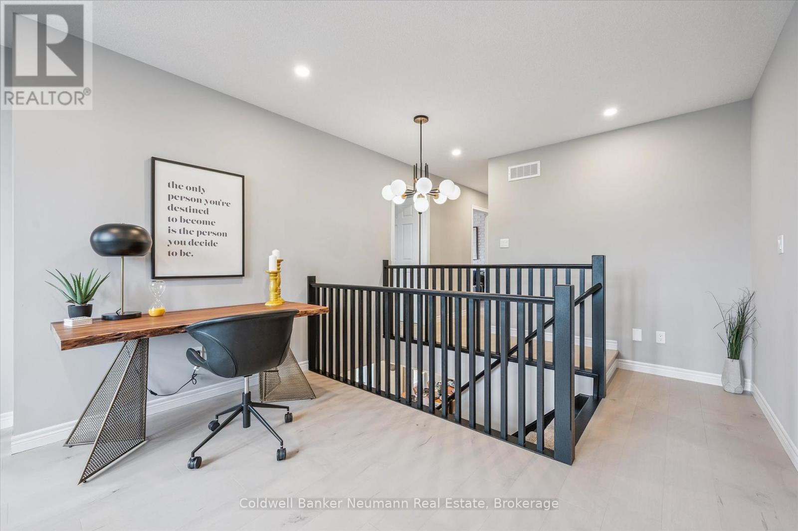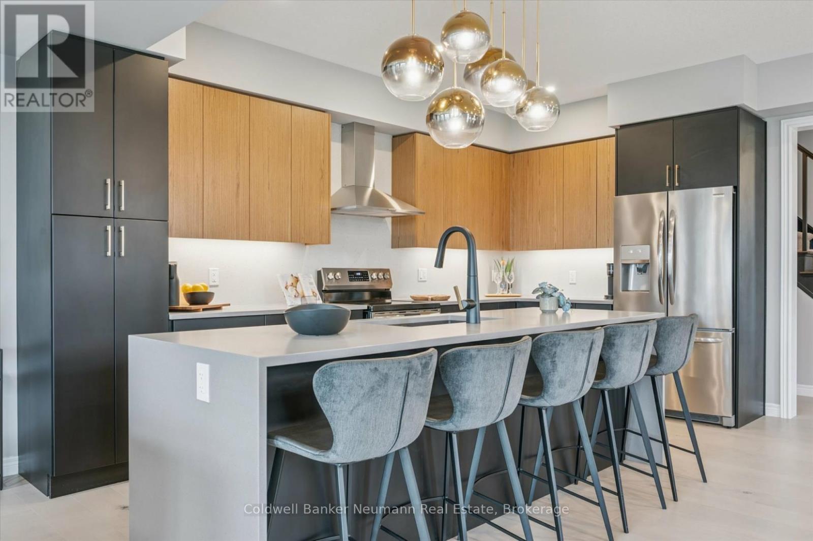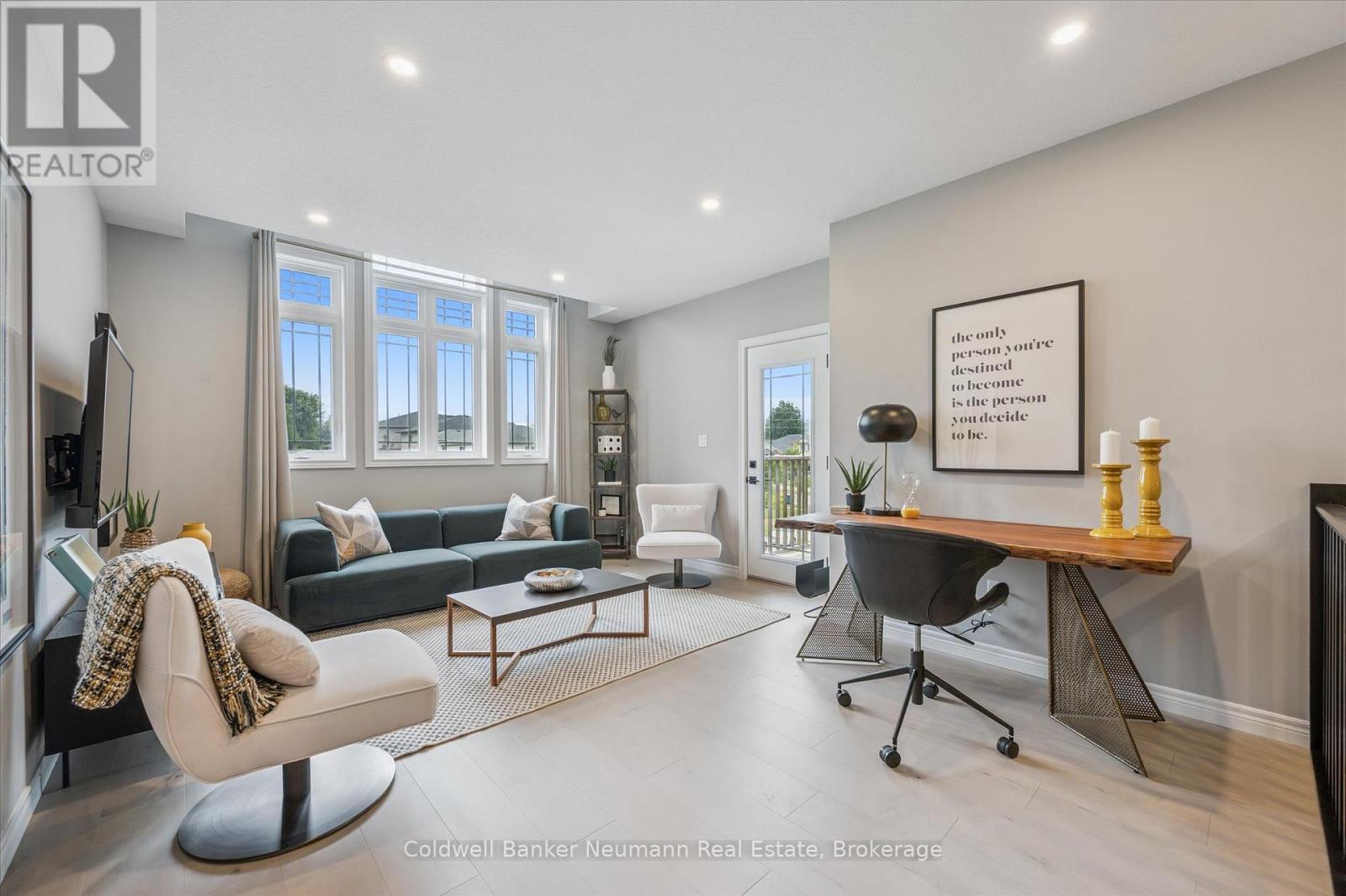Welcome to 43 Everton Drive, the stunning, Award Winning Model Home at The Glade by Fusion Homes. Nestled on a premium walkout lot in Guelphs East End, this detached home blends modern design with exceptional craftsmanship that Fusion Homes is known for. The open-concept main floor showcases hardwood flooring, abundant natural light, and a chef-inspired kitchen with custom two-tone cabinetry, a quartz waterfall island with seating, and designer finishes. Upstairs, enjoy a versatile family room with balcony access, a primary retreat with walk-in closet and spa-like ensuite, plus two additional bedrooms, a full bath, and an upgraded laundry room.The fully finished walkout basement offers endless options, like a rec room, gym, media lounge, or future in-law suite with separate entrance. Move-in ready and one of a kind, this property is a rare opportunity in a vibrant, family-friendly community. (id:46441)