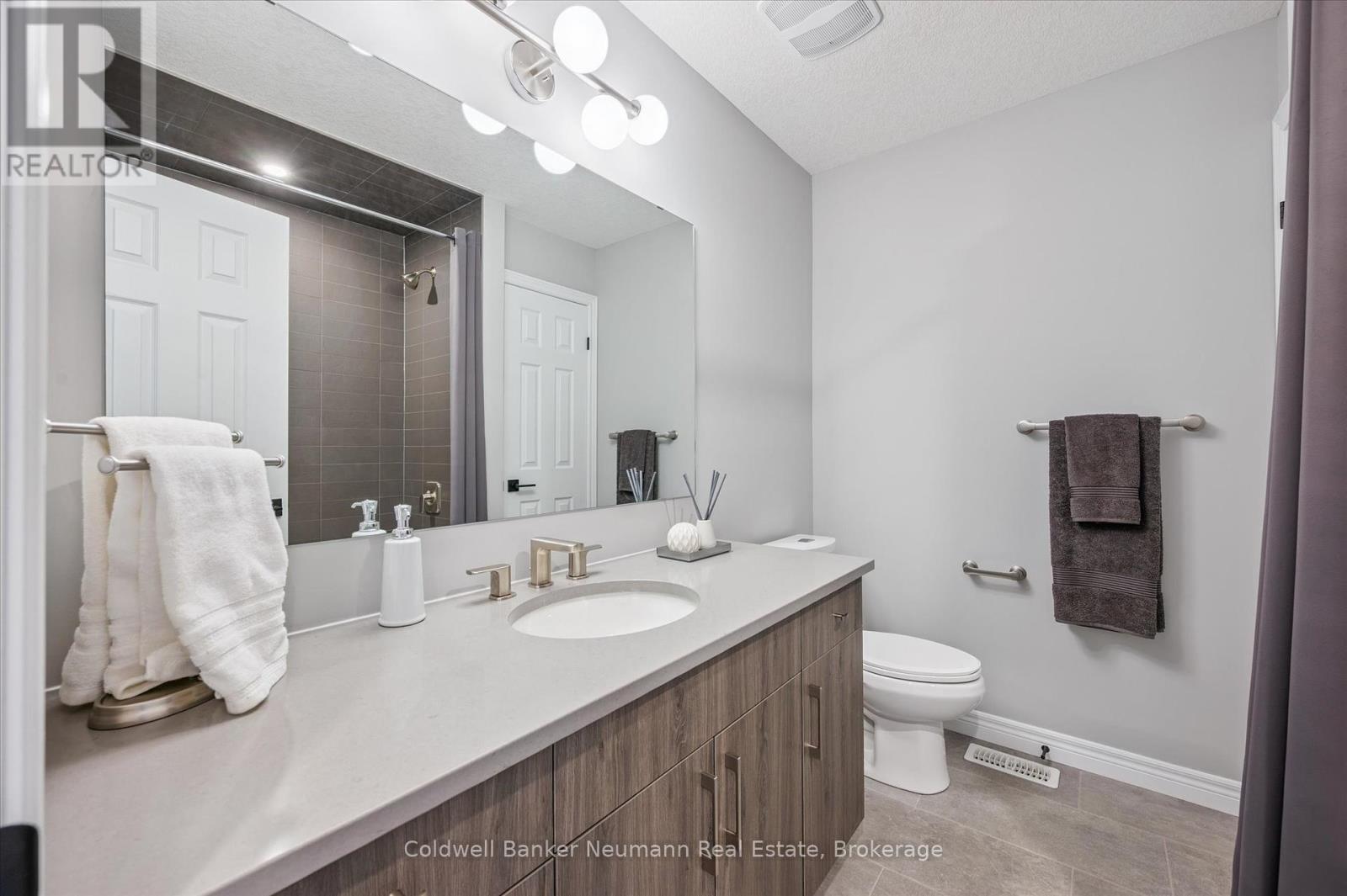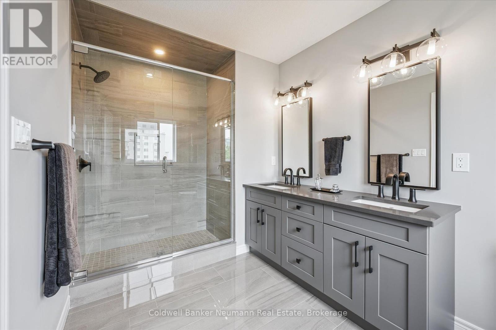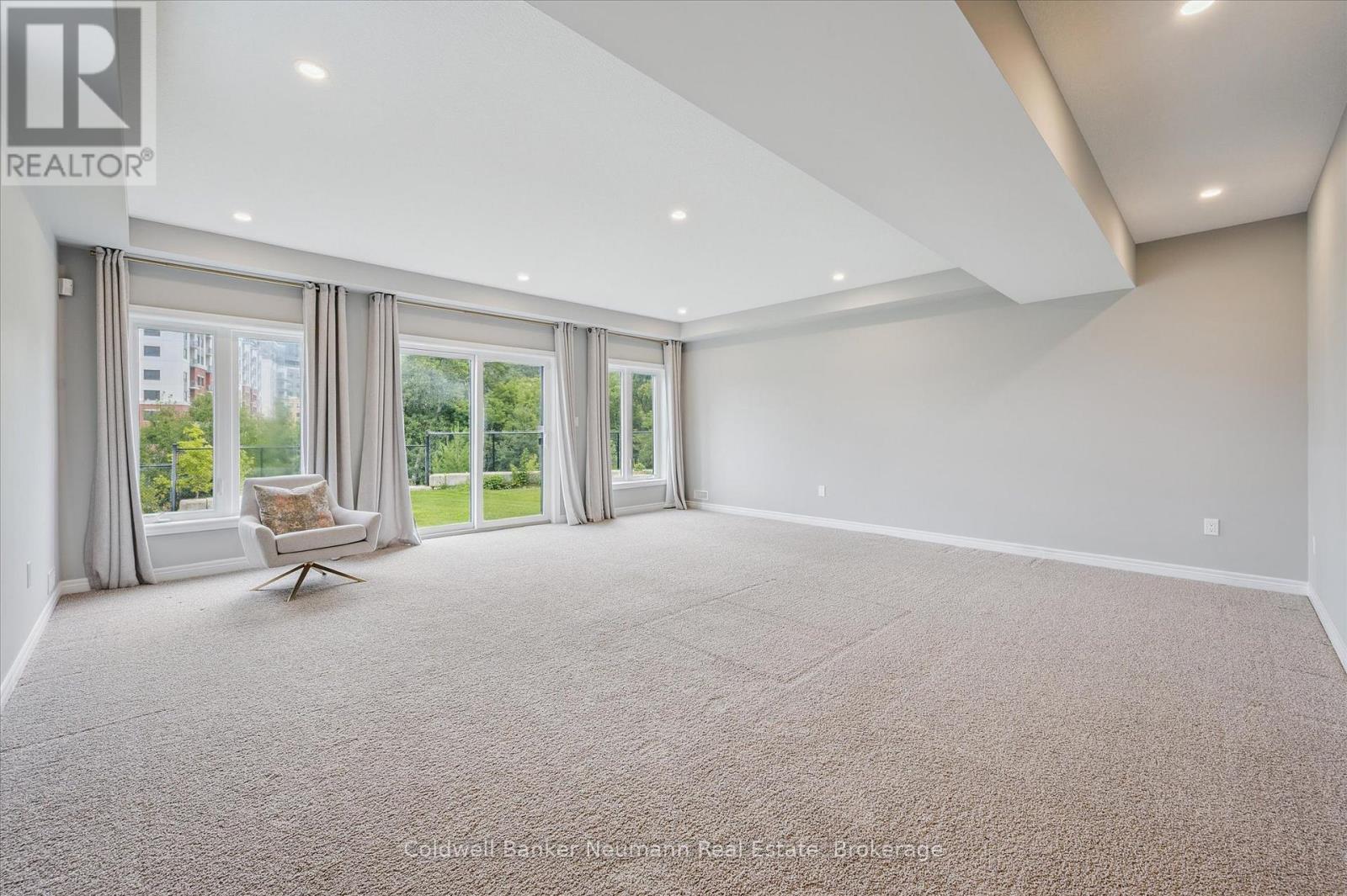Welcome to 43 Everton Drive, the stunning, Award Winning Model Home at The Glade by Fusion Homes. Nestled on a premium walkout lot in Guelphs East End, this detached home blends modern design with exceptional craftsmanship that Fusion Homes is known for. The open-concept main floor showcases hardwood flooring, abundant natural light, and a chef-inspired kitchen with custom two-tone cabinetry, a quartz waterfall island with seating, and designer finishes. Upstairs, enjoy a versatile family room with balcony access, a primary retreat with walk-in closet and spa-like ensuite, plus two additional bedrooms, a full bath, and an upgraded laundry room.The fully finished walkout basement offers endless options, like a rec room, gym, media lounge, or future in-law suite with separate entrance. Move-in ready and one of a kind, this property is a rare opportunity in a vibrant, family-friendly community. (id:46441)