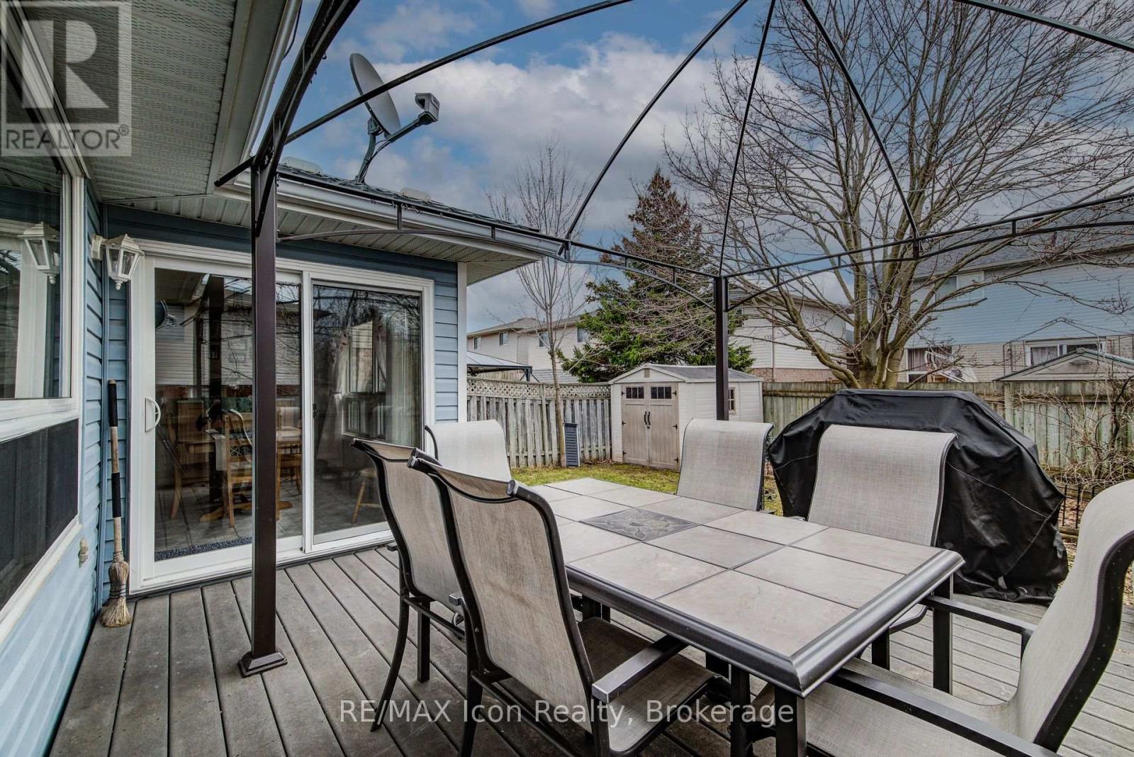 Welcome to this well-maintained move-in ready 2-storey home tucked on a sought-after family-friendly street in northeast Guelph. The main floor offers a bright and functional layout, featuring a spacious living area and a beautifully updated eat-in kitchen (2020) with modern finishes and direct access to a maintenance-free deck with gazebo - perfect for outdoor dining and relaxing in the fully fenced backyard. Upstairs, you'll find three well-sized bedrooms, including a relaxing primary suite complete with its own 3-piece ensuite, along with a full main bathroom. The finished lower level adds valuable living space with a bright rec room, a fourth bedroom, and an additional 3-piece bathroom - ideal for guests, teens, or a home office. Key updates include double-hung windows (2014), steel roof (2013), insulated garage door (2020), and updated flooring (2020). An ideal home offering space, flexibility, and a great location for growing families. (id:46441)