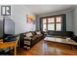 Welcome to 43 Irvin Street, a charming 2.5-storey home in the heart of Kitchener that blends original character with modern updates. Featuring hardwood floors, classic trim, and a welcoming front porch, this home offers both charm and potential. The main floor includes a bright living room, formal dining room (or family room), and an eat-in kitchen with updated hardware and newer window. Convenient main floor laundry and a 2-piece bath add to the functionality. A back entrance leads to a spacious deck and fenced yard with mature grapevine—perfect for outdoor living. Upstairs, you’ll find three bedrooms plus a versatile bonus space, along with an updated 4-piece bath featuring a tiled shower and modern vanity. The finished walk-up attic with pine floors and electrical provides additional living or office space. The basement offers a one-bedroom in-law suite (non-legal) that meets fire code, complete with kitchen, living area, bedroom, and full bath—ideal for extended family. Key updates include: new furnace and central air (2024), roof (2014), and 100 amp copper wiring. (id:46441)