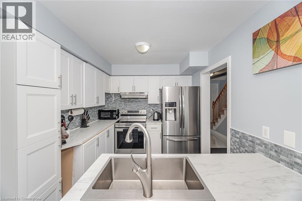 Welcome to this impeccably upgraded condominium townhouse, ideally located on a quiet court in the heart of Barrie. Offering over 1,500 square feet of meticulously designed living space, this residence has been maintained to the highest standards and showcases refined Hardwood flooring throughout the main level.The main floor features an elegant open-concept layout that seamlessly integrates functionality and style - ideal for both everyday living and entertaining. Highlights include a spacious dining area, a contemporary two-piece powder room, and a well-appointed kitchen complete with built-in appliances. The inviting living room overlooks a sunlit backyard, while the front elevation offers serene views of a nearby children's playground, making it an ideal setting for families.The upper level hosts an expansive primary suite, thoughtfully designed with a walk-in closet and a luxurious four-piece ensuite. Two additional generously sized bedrooms, an updated four-piece bathroom, and a conveniently located laundry room complete this level, providing both comfort and practicality.The professionally finished basement has been tastefully renovated to include a modern bathroom and offers ample storage space, catering to the needs of a growing household.This exceptional property is ideally situated just minutes from premier shopping centres, highly regarded schools, major highways, parks, and a variety of dining options. A rare opportunity to own a move-in ready home in one of Barrie's most sought-after neighbourhoods- this is truly a must-see. (id:46441)