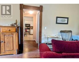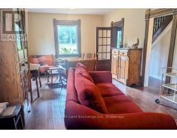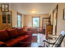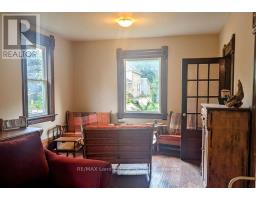 Attractive one-and-three-quarter storey century-old home on a corner lot, adorned with old maple trees and other green foliage in an expansive lawn. A covered front veranda looks onto a beautiful memorial park across the road. The house interior emanates old-fashioned elegance, from original hardwood trim in all the rooms, plus hardwood flooring in the hallways and traditional living/dining room, juxtaposed with updated windows throughout the house, wall-to-wall plush carpeting in three upstairs bedrooms (all with closets) and going up the stairs, and main floor modern kitchen adjoining the laundry room. The houses two bathrooms are the four-piece main floor bathroom and the second-floor smaller bathroom with a shower. Other features include an updated gas furnace and central heating system, a solid stone foundation, a sump pump, a rented water softener system that includes a reverse osmosis filter tap in the kitchen and, as well, an attached garage/workshop. Located a few blocks east of the Village of Blyth's main street provides the excellent balance of walking distance to the renowned Blyth Theatre, the Blyth Inn community pub, plus various shops filled with locally-produced goods, yet far enough from these creative activities to enjoy quiet and privacy when at home. Blyth's other noteworthy attractions include the Cowbell Brewery Co. restaurant and shop on the edge of a growing town, and various trails which include being directly connected to the Goderich to Guelph Rail Trail (G2G), while surrounded by the bucolic splendour of extensive agricultural fields and woodlots in all directions. (id:46441)