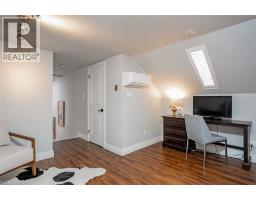 FULLY FURNISHED Executive Rental – Short or Long Term. This charming and cozy 1-bedroom, 1-bath suite located in a historic boutique building, just one block from the lake and Spencer Smith Park. This bright and spacious suite offers a welcoming open-concept layout featuring a comfortable living space and modern kitchen with white cabinetry, granite counters, peninsula with seating for 4 and ample pantry storage. The living room includes large sofa, swivel chairs and Smart TV overlooking the private courtyard with mature gardens, shared BBQ and outdoor seating. Upstairs you’ll find a serene primary bedroom with neutral colour palette, skylights, nightstands, and two walk-in closets, plus a cozy office nook and additional seating area. The spa-inspired bathroom includes a glass shower/tub combination and modern vanity. Additional features include shared coin laundry on the lower level and 1 dedicated parking space. Ideally located steps from Burlington’s waterfront, Spencer Smith Park, boutique shops, restaurants, and major highways (QEW, 403, 407) as well as the GO station. No smoking, no pets. (id:46441)