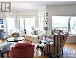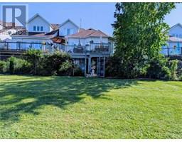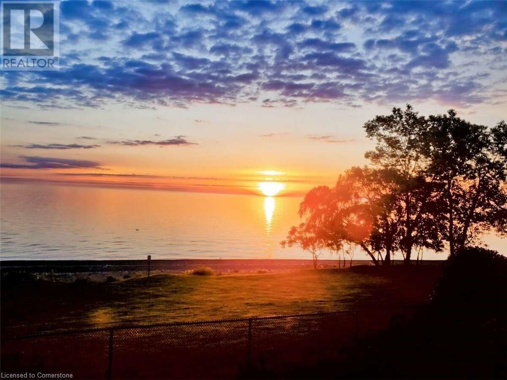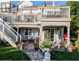 For more info on this property, please click the Brochure button. Luxury lakefront, spacious freehold end unit townhome, bungaloft 1.5 stories, in very desirable enclave. A panorama of lakeshore views of the Golden Horseshoe from Toronto to Niagara-on-the-Lake. Sunrise and sunset views over Lake Ontario from your home, garden and beach. 3 bedrooms with ensuite, walk in closet, 1 powder room, 2 gas fireplaces, large great room with bright all glass fronting to the lake. Granite counters throughout with cook's delight kitchen, stainless steel appliances, eat-in dinette with sliding doors to the large deck (al fresco dining) and the lake. Hardwood floors, high ceilings (cathedral in great room to loft), separate dining room. Staircase to bright large lower level family room with fireplace and walk out w panoramic views of garden and lakefront. Additional bedroom with ensuite and large workroom/office, very large utility room plus separate wine/storage room. Other features include: C/Air, C/Vac, California shutters, Cambridge fiberglass/asphalt shingles w 30 year warranty, garage door opener, video doorbell, anti-critter meshed soffits, leaf filter gutter system, security garden light, NEST thermostat and smoke detector, CO2 detector, garage EV car charger, inground irrigation system, main floor laundry, inside entrance to garage, direct TV. This truly exceptional home is finished with crown molding on primary ceilings, windows, and wall columns. Short stroll to town, marina and lakefront parks including leash free and tennis, with conservation area and Bruce Trail. The town offers great shopping, large new hospital, all medical practitioners, library, secular and private elementary and secondary schools, both town and YMCA recreation centres and restaurants. (id:46441)