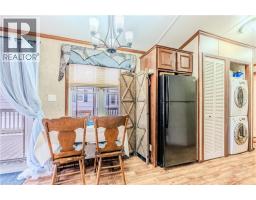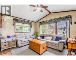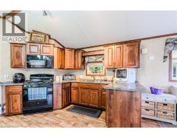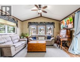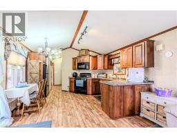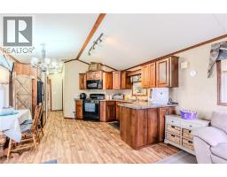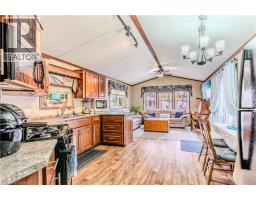 Sharp home, move in condition, in Burlington’s highly desired Lost Forest Park with secure gated entry. Located just minutes from Memorial Park in the Village of Waterdown. 1 bed, 1 bath, Home features a spacious family room with an abundance of windows. Large eat-in kitchen with quality cabinetry, flooring, appliances, and plenty of room for dining. Off family room and kitchen is a walkout to a huge 36 X 10 covered deck. This is an End Unit, besides visitors parking, great when you have guests!! The monthly fee 838.58 includes land lease, maintenance of the park and systems and property tax. (id:46441)