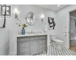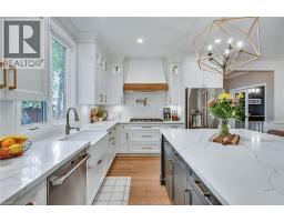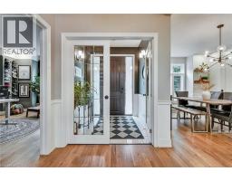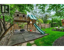 Prestige, Luxury, and Lifestyle in Ancaster's Most Coveted Enclave. Set in one of Ancaster's most sought-after neighbourhoods-just steps from the iconic Hamilton Golf & Country Club—this freshly reimagined residence offers nearly 4,000 sq. ft. of refined living space where timeless design meets everyday comfort.The professionally designed chefs kitchen ('22) is the showpiece of the home: custom full-height shaker cabinetry with glass-lit accents, quartz counters, a charcoal island with brushed bronze fixtures, gas cooktop with pot filler, farmhouse sink, custom range hood, and herringbone style backsplash. Wide-plank hardwood floors and designer lighting complete this entertainer's dream. Main-floor highlights include a bright executive home office, elegant wainscoting, and an inviting flow that balances open concept with defined living spaces. Upstairs, four spacious bedrooms provide plenty of room to grow, while the primary suite feels like a boutique hotel retreat: Moroccan-inspired marble tile, walk-in glass shower, and dual vanities ('20). The fully finished lower level adds flexibility, with a 5th bedroom, full bath, and generous rec space—perfect for guests, in-laws, or an independent teen. Step outdoors and discover a backyard built for memory-making: a sparkling saltwater pool with a brand-new liner ('25), built-in play structure, and a fully fenced yard that offers both privacy and peace of mind. Families will appreciate proximity to top-ranked public and Catholic schools, with extracurricular programs, parks, and trails nearby—making this not just a home, but a foundation for a connected, active lifestyle. This is more than a house. It's an Ancaster lifestyle statement—design-driven, family-forward, and move-in ready in one of the city's most prestigious. (id:46441)