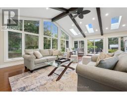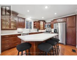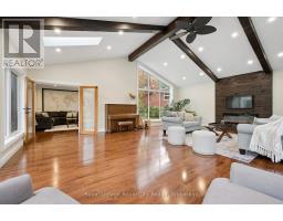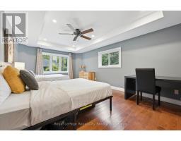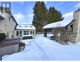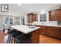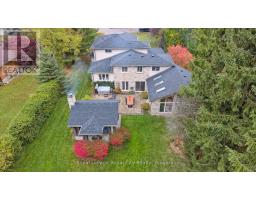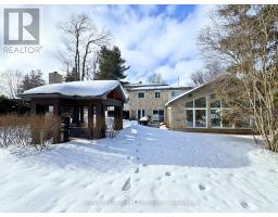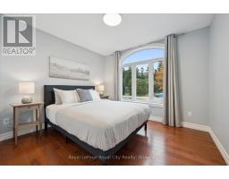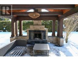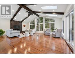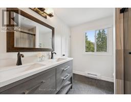 Tucked away on over an acre of peaceful, tree-lined property, this thoughtfully designed multi-level home offers a rare blend of space, style, and soul. From its inviting front porch to the rustic entertaining space out back, every inch of this 5-bedroom, 3-bathroom property invites connection with family, friends, and the natural beauty that surrounds it. Upon entrance, you will quickly fall in love with the open-concept design, enhanced by gleaming hardwood flooring. The chef-inspired kitchen showcases sleek Corian countertops, custom cabinetry, and a functional island that flows perfectly into the combined living/dining room, creating an elegant space for entertaining. A sizable main floor bedroom is ideal for guests or a home office, while a well-equipped mudroom supports busy family living. Descend to the show-stopping lower-level family room, anchored by an attractive fireplace, and flaunting vaulted ceilings, engineered hardwood, skylights, and floor-to-ceiling windows capturing breathtaking backyard views. The adjoining games/rec area is designed for fun and function, complete with heated floors, backyard access, and a modern 3pc bathroom. Upstairs, the 2nd level provides 2 generous bedrooms and a loft space, perfect for a reading nook or study, alongside an updated 4pc bathroom. The private, 3rd level offers a primary suite with a walk-in closet and a 5pc ensuite, as well as a 5th spacious bedroom. The finished basement extends a versatile living or recreational space, complemented by a dedicated laundry room and storage/utility room. Step outside and prepare to be captivated: a 2-tier stone patio frames alfresco dining and a rejuvenating hot tub area, while the rustic post-and-beam gazebo with a striking stone fireplace promises memorable evenings under the stars. Surrounded by mature trees and lush green space, this property evokes the feel of a private resort retreat- just minutes from essential amenities and ready to welcome your next chapter. (id:46441)