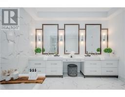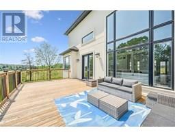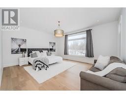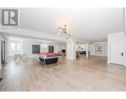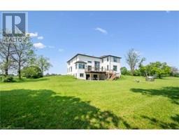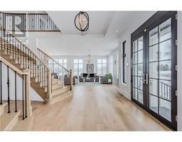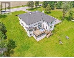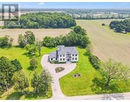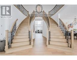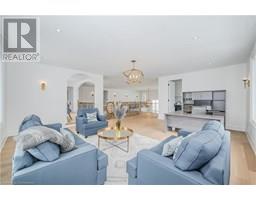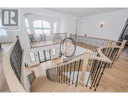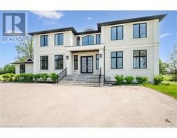 Nestled on 2 acres of land, this grand and spacious home offers exceptional living space and unmatched luxury. Boasting 8,400 sq ft of finished living area, this property is located just a short drive from all amenities and Highway 401.The home greets you with impressive curb appeal, featuring a circular driveway and a 3-car garage. The grand double curved staircase sets the tone for the rest of the home. Featuring large principal rooms and expansive ceiling heights that provide an inviting and airy atmosphere flooded with natural light . The double-story great room opens to below, providing a dramatic focal point, and is perfect for gathering or simply relaxing. The gourmet kitchen is a chef’s dream, showcasing custom cabinetry, large island, quartz countertops, B/I appliances, and a cozy breakfast area with B/I bench seating. Custom built-in cabinets and bookshelves in the Den and Great Room, are complemented by cozy linear gas fireplaces that add warmth and sophistication to the space. The entire home features a carpet-free interior with clean, modern finishes throughout.The main floor is dedicated to convenience and comfort, with a spacious master suite complete with an ensuite bath and walk-in closet. In addition the home offers a formal living/dining area perfect for entertaining and a home office/den. On the upper level, you'll find a second primary bedroom with its own private ensuite and 2 additional bedrooms and ensuites . The oversized upper landing provides versatile space that can be used as a sitting area, kids’ lounge, or easily converted to a bedroom. A second-floor laundry room adds to the home's practicality.The fully finished lower level extends the home’s living space even further, with a walk-out to the rear patio and a separate entrance. It features an oversized rec room and games area with a wet bar, as well as a dedicated theatre room.Offering unparalleled space and functionality, designed for luxury living and effortless entertaining. (id:46441)