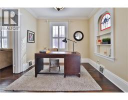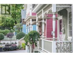 Welcome to a truly historic 1890 character home, set on one of downtown Burlington’s most admired streets. Part of an iconic group of 4 cottages inspired by the famed “Painted Ladies,” this residence offers a rare opportunity to own a piece of history, protected from future redevelopment, yet flexible for modern living. Directly across from Brock Park, and steps to the lake, downtown shops, cafés, and cultural attractions, the lifestyle is unmatched. Spend mornings and evenings in the enclosed front porch, perfect for people-watching and soaking in the neighbourhood. Inside, timeless style meets thoughtful upgrades. Original baseboards and mouldings, antique pine floors, and 9ft ceilings create warmth and authenticity, while modern comforts include central air, updated 100-amp electrical service, and a beautiful custom kitchen w/ heated ceramic floors, new cabinetry, SS appliances, and a seating area overlooking the side yard. The living room features a gas fireplace, and flows into a highly functional flex space — ideal as a home office today, and easily converted to a dining room or guest Bedroom depending on your lifestyle. A mud room w/ stylish glass block accents adds even more appeal. Upstairs, the primary bedroom is a retreat w/ a fireplace, alongside a luxurious bathroom showcasing Victorian-style fixtures, heated floors w/ custom inlays, plus an additional bedroom perfect for family or guests. Out back, enjoy a private, landscaped outdoor oasis with a large deck, BBQ gas line, spacious partially fenced yard, and custom shed—delivering a cottage-like feel just steps from the lake. The location shines year-round: daily walks along the waterfront, winter skating nearby, and festivals right down the street—complete with two prime parking spots for hosting. A rare blend of heritage, lifestyle, and modern comfort—ideal for growing families, professionals working from home, or anyone drawn to distinctive character living in the heart of downtown Burlington. (id:46441)