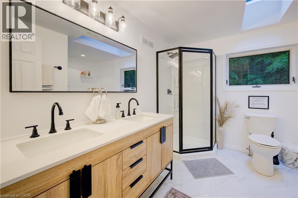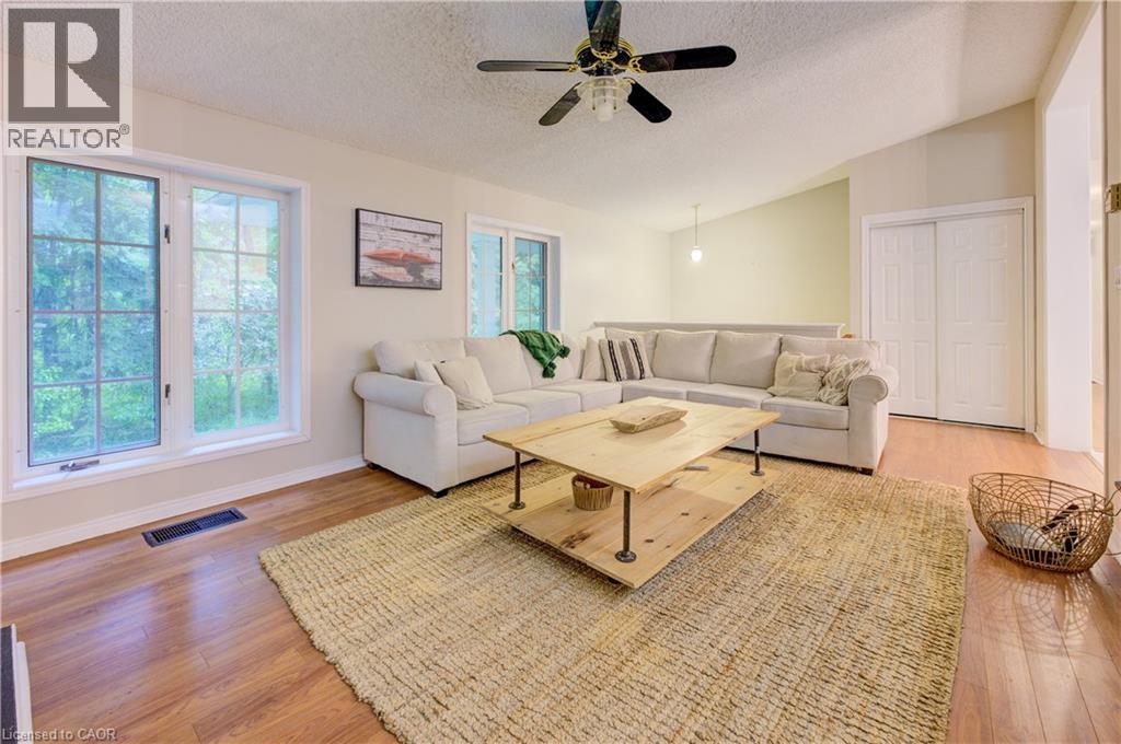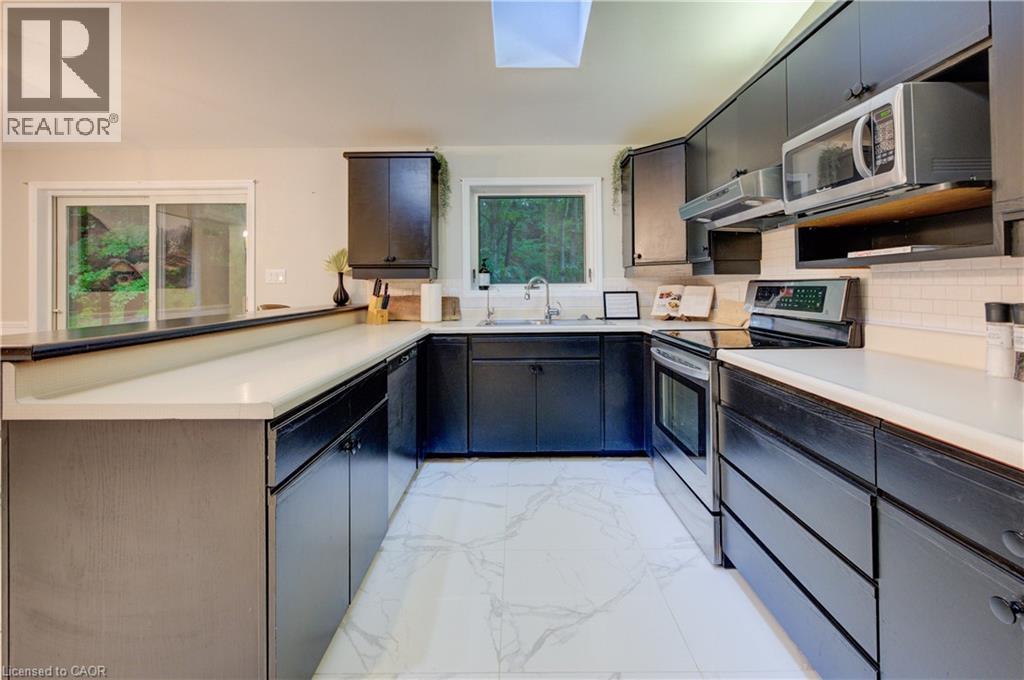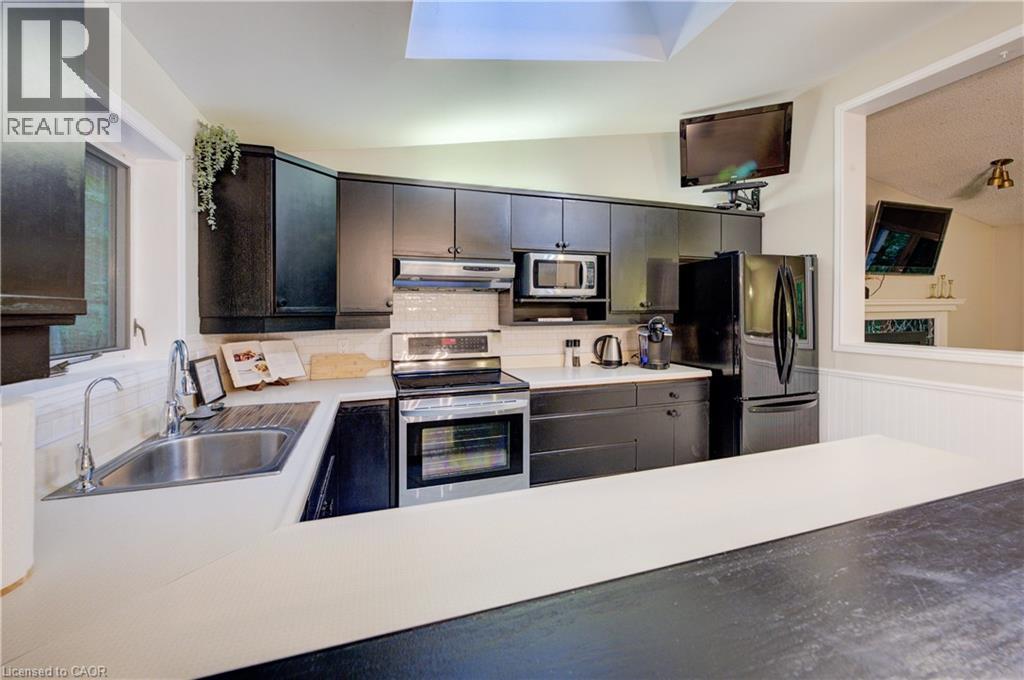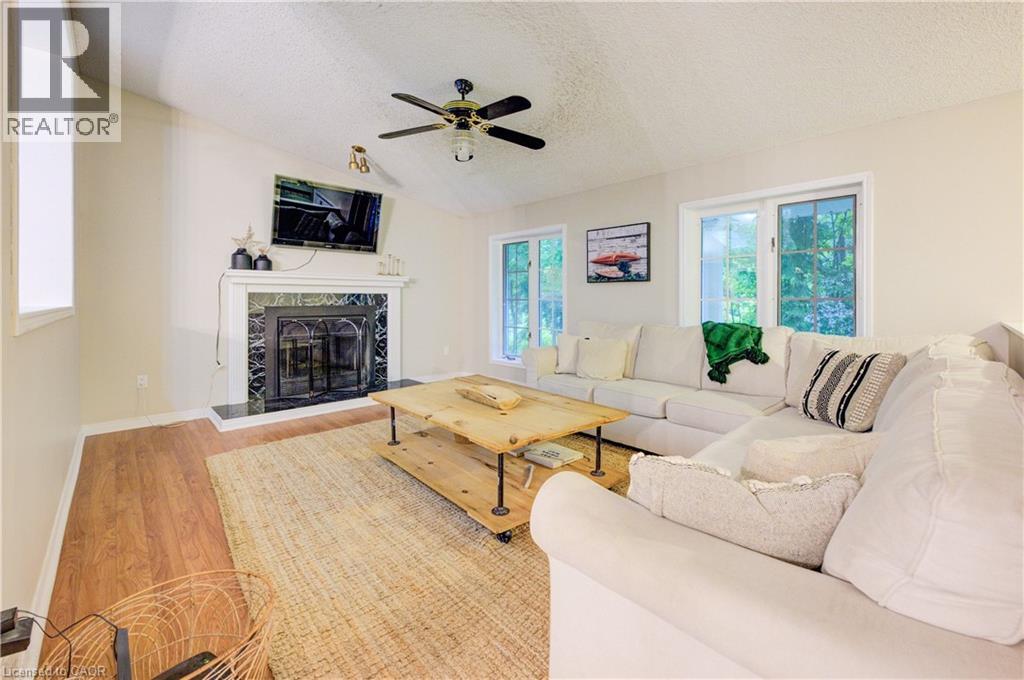 Welcome to your family’s next chapter at 46 Blairs Trail, Huron-Kinloss. Located just a short walk to Lurgan Beach of Lake Huron & 10 minutes from downtown Kincardine, this 4 bedroom 2 bathroom home offers no need for compromise. Enjoy almost 3,000 square feet of finished living space with tasteful upgrades throughout. The main floor features vaulted ceilings and an open concept living + dining room area, perfect for hosting. Kitchen upgrades include new dishwasher (2023), new oven (2023), new microwave (2022) new chandelier lighting, and new porcelain tiles. Cozy up by the wood fireplace in the family room, or enjoy a jacuzzi in the oversized and newly renovated 4pc main floor bathroom. The master bedroom has beautiful bay windows with a view of the forest, and the 2 other main floor bedrooms are spacious with natural light shining through the large windows. Downstairs, you’ll find fun for the whole family. The newly renovated open concept lower level features a games room, a V/entertainment area with fireplace, a sauna, and a wet bar with wine fridge (2022) dishwasher (2022) and quartz countertops. You’ll also find a 4th bedroom & 2nd bathroom on the lower level. Outside, enjoy morning coffee on the covered front porch, a sunny day at the beach, or an evening barbecue on the raised deck. Finish the evening off with a campfire in complete privacy. Just in time for the summer season! (id:46441)