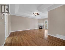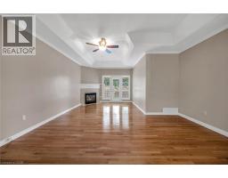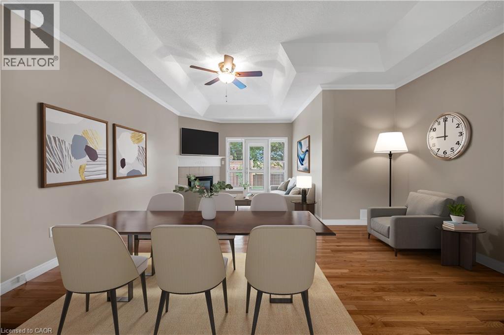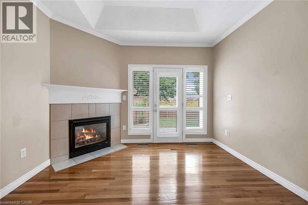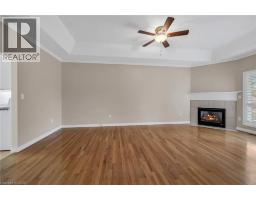 $575.19 MonthlyWELCOME TO TWENTY PLACE! This popular adult-lifestyle community offers a spectacular residents' clubhouse with many great amenities! Enjoy the indoor pool, sauna, whirlpool, the fully equipped gym, a library, games and craft rooms, pickle ball court, shuffleboard and lawn bowling courts, and the many social events held in the grand ball room. This is turn-key living at its best! Clean and move-in ready end unit. The main floor primary bedroom has a mobility-friendly 4 piece ensuite bathroom with a bathtub cut-out and a window. There is a convenient pocket door into the main floor laundry room where you'll find stacking washer and dryer (new in July) and access to the attached garage. Lovely hardwood floors, gas fireplace, California shutters and 10' coffered ceiling with crown moldings are featured in the great room. A patio door leads to the super private patio with no backyard neighbors. The large eat-in kitchen has ample white cabinets, a pantry, appliances included (microwave new in July) and California shutters on the large south facing window. There is conveniently located main floor powder room with a window. A large L-shaped rec room with laminate flooring, a den (was used as a bedroom), a 3 piece bathroom, and good storage space, completes the finished basement. Quick possession is available, so start packing and you'll be on your way to enjoying your new lifestyle in this friendly, active community! (id:46441)