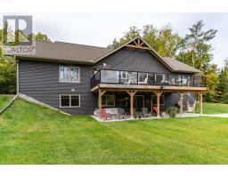 This is it! The complete package, sitting on about 4.5 acres just minutes from Hwy 11 this large custom home has a triple attached garage, walkout basement and around 400' of waterfront just a stones throw from Mary Lake. Offering direct access to beautiful Mary lake and the 4 lake chain, this unique property has quiet and private dockage in the river with no neighbours across spoiling the serene view. The home was custom built in 2019 with quality finishes and a smart layout, it features a main floor primary suite, main floor laundry, a huge deck overlooking the expansive yard and river, and a walkout basement. The triple attached garage has a large loft currently used for storage but could be finished to suit your families needs. The large steel pile dock is great for lounging at the waters edge while the poured concrete patio is perfect for a campfire or to enjoy a soak in the wood fired hot tub under the stars. Extremely private, well thought out and the best of all worlds, this four season home or vacation property ticks so many boxes. Call for your private tour. (id:46441)