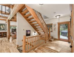 Welcome to this beautiful Cedar Coast Timber Frame home, built in 2006, showcasing large posts and beams, custom timber staircase and railings and cathedral ceilings of tongue and groove cedar. This home exudes charm, warmth and the big Wow factor upon entry. An open concept great room design features a stunning custom kitchen with walk-in pantry, complimented by a spacious, bright dining room and breathtaking living room with a floor-to-ceiling stone wood-burning fireplace, large windows with a mature forest view and a walk out to a private back deck. Main floor living is made easy with a laundry/powder room and primary bedroom, accented with cedar beams, a 4 pc ensuite and walk-in closet. Climb the timber stairs to a gorgeous loft overlooking the living room and forest view, providing a wonderful work, play or quiet space, together with a 2nd generous sized bedroom with large finished storage spaces and a 3 pc. bathroom. Maple flooring on the main level and cedar plank floors on the upper level,. The finished lower level of this well cared for home has a generous sized family room, bright with morning sunlight, a 3rd bedroom with large egress window and an office/den with similar window and storage closet. This level has under-stair storage, two double hallway closets and a 3 pc bathroom, with large walk-in shower. A very large mechanical/storage room completes this level. An automatic back-up Generac Guardian Series generator provides peace of mind during power outages, to almost the entire home. Custom designed to match this wonderful home is a large, bright double car garage with 2-10x10 garage doors, plywood walls, a mezzanine loft and a Trustcore ceiling. Pictures are worth a thousand words but this home must be seen to be appreciated. (id:46441)
