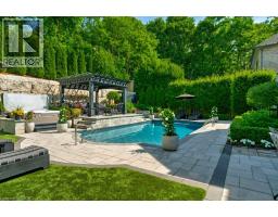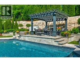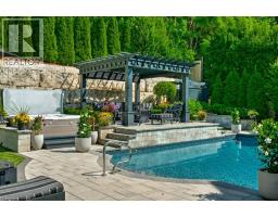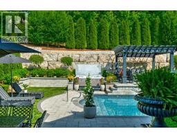 Welcome to 47 Legacy Lane – a true gem nestled in the heart of Ancaster within an exclusive, private gated community. This stunning home is the perfect blend of luxury, craftsmanship, and functionality, offering a thoughtfully curated lifestyle both inside and out. From the moment you arrive, the quality of this home is unmistakable. The exterior has been transformed into a private resort-like oasis featuring concrete stone inlays, a hot tub, a pergola with a fire table, a fully equipped outdoor kitchen with built-in BBQ, and a breathtaking saltwater pool. Surrounded by mature trees, professional landscaping, perennial gardens, artificial turf, and a built-in irrigation system, the grounds offer beauty and ease of maintenance year-round. Inside, the home continues to impress with oversized doors and trim, hardwood flooring throughout, and 10-ft ceilings that enhance the sense of space and elegance. The open-concept layout includes grand principal rooms, a dramatic two-storey family room, and a dreamy chef’s kitchen perfect for entertaining. The MAIN FLOOR PRIMARY SUITE offers comfort and privacy, while the additional four bedrooms and 3.5 bathrooms provide ample space for family and guests. The expansive lower level features above-grade windows and is brimming with potential—ideal for creating a custom gym, media room, or in-law suite. Perfectly located near conservation areas, walking trails, golf courses, top-rated schools, shops, and major highways, this is a rare opportunity to own a turnkey luxury home in one of Ancaster’s most coveted communities. Move in and start enjoying everything this exceptional property has to offer—just in time for summer. (id:46441)