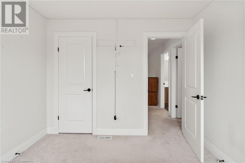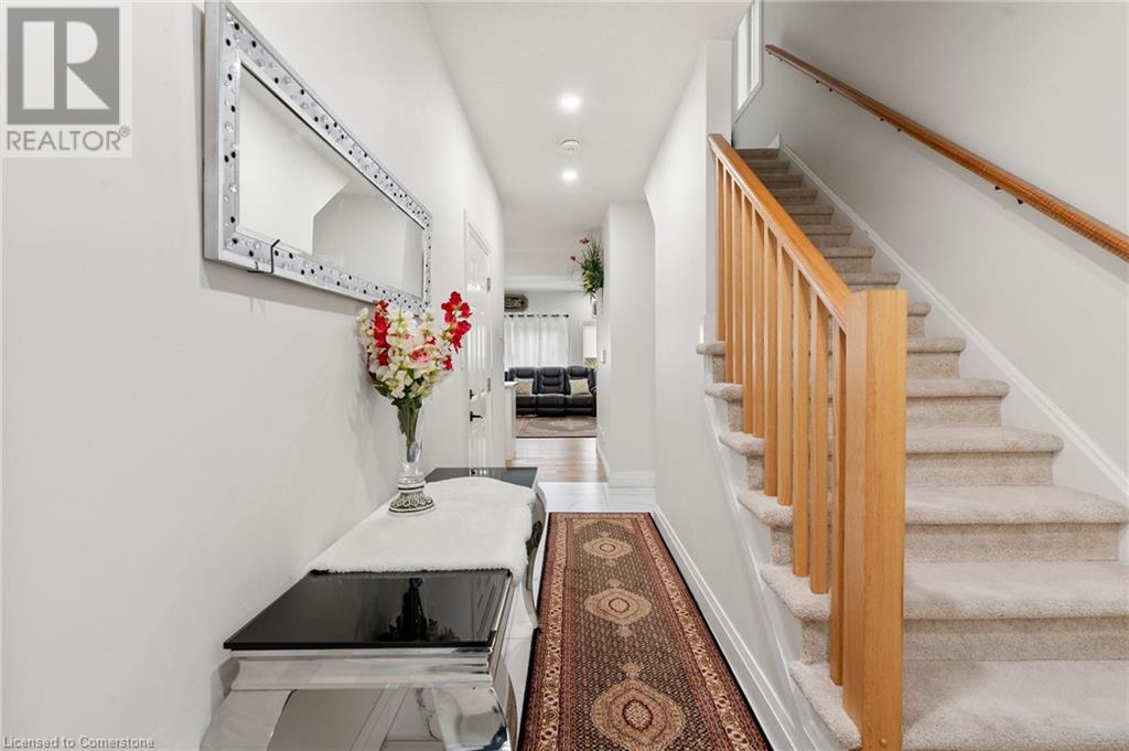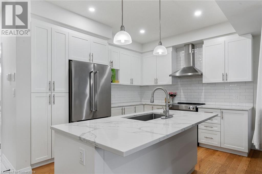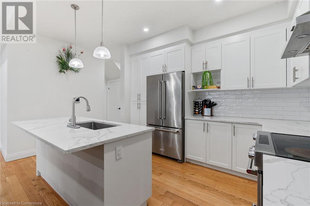 Welcome to this stunning 2-storey home in the prestigious Doon South neighbourhood. Offering over 2,300 sq.ft. of beautifully finished living space that blends custom craftsmanship with modern elegance. From the moment you enter, you're greeted by oversized marble-look tiles and a bright, spacious layout featuring engineered hardwood floors, soaring 9’ ceilings, and an open-concept design perfect for family living and entertaining. The chef’s kitchen boasts full-height custom cabinetry, quartz countertops, a walk-in pantry, timeless subway tile backsplash, and a full 2020 stainless steel KitchenAid appliance package. Oversized 8’ patio doors lead to a fully sodded and fenced backyard with space for a future deck, garden, or play area. Upstairs, enjoy the convenience of second-floor laundry and three sun-filled bedrooms with blackout window coverings, including a luxurious primary suite with a spa-inspired ensuite featuring a glass walk-in shower and rainfall head. The unfinished basement with a 2-piece washroom rough-in offers excellent potential for future development. Additional features include central A/C, water softener, humidifier, and a stamped concrete/paver stone 3-car driveway. Ideally located just minutes from Hwy 401, this quality Ridgeview home is a rare opportunity where luxury, comfort, and location come together seamlessly. (id:46441)