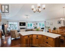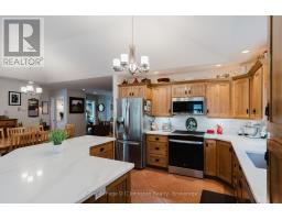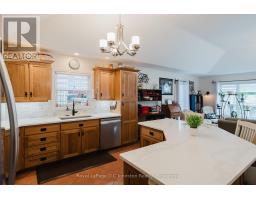 Welcome to this custom Beldman-Built stone bungalow on a spacious corner lot in a much sought after area of Port Elgin. This beautifully maintained bungalow is move-in-ready and offers main floor living as well as a fully finished basement in-law suite, ideal for families, retirees, or those needing extra guest space. Recent upgrades within the last two years include quartz countertops in the kitchen and bathroom, new appliances including an induction stove (with built-in convection oven and air fryer), new stackable laundry pair, new quieter running dishwasher, new patio door and screen, additional full kitchen in the basement, and a brand-new central air conditioner (2025). Main level features ash hardwood flooring with ceramic tile foyer and kitchen areas, custom hickory kitchen cabinetry, large island, open-concept dining and living room with tray ceiling, and walkout to private deck. Primary bedroom with two double closets, second bedroom/office with queen-sized murphy bed and closet, 4-pc bathroom with clawfoot soaker tub, and main floor laundry with garage access. Lower level includes large family room, two additional bedrooms, 3-pc bath with shower, full second kitchen with dining area, cold room, ample storage and a bonus room under the garage - perfect for hobbies or a workshop. Landscaped exterior with interlocking driveway and walkways, fenced backyard, a lovely covered front porch, and storage shed. A quality-built home with natural gas heating make this lovely bungalow comfortable year round. Don't delay to book a showing of this wonderful home. (id:46441)