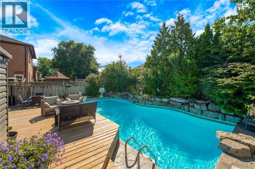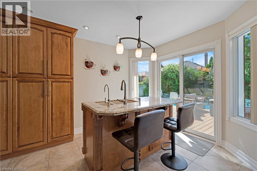 Welcome to 477 Burnett Avenue, bring your offer in anytime and own your own summer oasis. A beautifully maintained all-brick two-storey home offering nearly 2,000 sq. ft. of stylish and functional living space. Step inside the grand foyer and you'll immediately notice the beautifully updated hardwood staircase and fresh, welcoming feel. The main floor offers a thoughtful layout with a powder room and a spacious laundry area, which also functions as a convenient mudroom. Just beyond, the cozy family room features a gas fireplace and stunning hardwood floors, perfect for everyday living. The heart of the home is the kitchen, loaded with cabinet space, granite countertops, spacious island, stainless steel appliances, and large sliding doors that lead to the backyard oasis. A formal dining area just off the kitchen is ideal for family meals, while a separate living room with flawless hardwood flooring provides additional space to relax or entertain. Upstairs, you’ll find four generous bedrooms and a beautifully updated 4-piece main bathroom. The primary suite is a luxurious retreat, complete with a private ensuite featuring a deep soaker tub and separate shower. Freshly updated carpet adds comfort and style to the upper level. The fully finished basement is an entertainer’s dream, complete with a second gas fireplace, a stunning wet bar, and a full 3-piece bathroom, offering the perfect space for movie nights, games room and great set up for hosting friends. Step outside to your private backyard paradise: stamped concrete throughout, a sparkling in-ground pool with two fountains, and plenty of space to lounge, dine, and entertain. It’s a vacation destination in your own backyard. With a stamped concrete walkway to the front door, a double car garage, and space designed for family living, this home offers comfort, charm, and elegance both inside and out. Book your showing today! (id:46441)