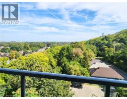 This Executive End-Unit 2 Bedroom 2 bath suite boasts over 800 sq ft of living space and is nestled just below the beautiful escarpment offering gorgeous scenic views while within walking distance of St Joseph’s hospital and the GO Station. The open concept floorplan is luxuriously appointed throughout and offers carpet-free living w/ low maintenance laminate flooring, upgraded lighting and window coverings throughout, quality stainless steel appliances in the modern kitchen w/ quartz countertops which overlooks the living room/dining room and an inviting spa-like 4pc ensuite bath w/ quartz countertops and walk-in closet off the primary bedroom, an additional modern 3pc bath, spacious 2nd bedroom and in suite laundry. Step outside to your oversize balcony offering panoramic views of the bay and downtown core. Premium building amenities include a ground floor terrace w/ patio seating & bbq area, modern exercise room and party room. Steps to the Wentworth stairs, trails, prime transit, shopping, trendy restaurants and the downtown core – this elegantly appointed executive condo is sure to please! ** Use of 1 underground parking space & 1 storage locker included! RSA (id:46441)