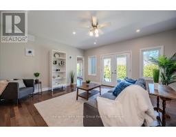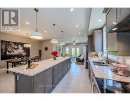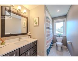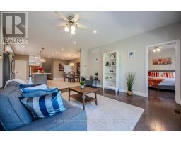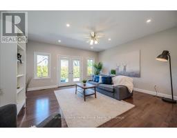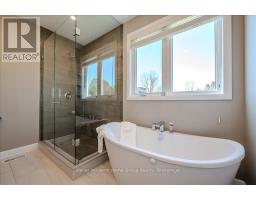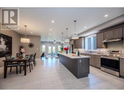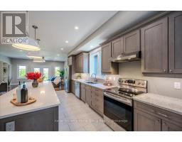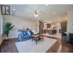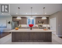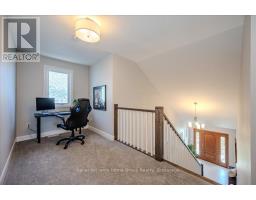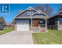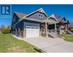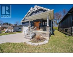 Custom-Built Home in a Premium Fergus Setting! Situated on a mature, tree-lined lot just steps from the Cataract Trail, Grand River, and the vibrant shops, cafés, and restaurants of historic downtown Fergus, this exceptional property offers a rare blend of tranquility and convenience. Enjoy effortless commuting with quick access to Kitchener-Waterloo, Guelph, and Highway 401. Striking curb appeal features a timeless stone façade, durable vinyl siding, and a spacious concrete driveway with ample parking. Relax on the inviting front porch before entering a beautifully designed open-concept main floor showcasing rich hardwood and tile finishes. The chef-inspired kitchen is complete with quartz countertops, stainless steel appliances, abundant cabinetry, and a large island ideal for hosting. The dining area flows into a sun-filled great room with walkout to an expansive wood deck and private backyard retreat. The main floor primary suite offers a generous walk-in closet and a luxurious ensuite with glass shower, soaker tub, and double vanity. Upstairs, find two well-sized bedrooms, a versatile office nook, and a full 4-piece bath. The bright lower level with high ceilings, oversized windows, and bathroom rough-in provides excellent potential for future living space. An ideal home for families, downsizers, or those seeking main-floor living in a sought-after location. (id:46441)
