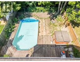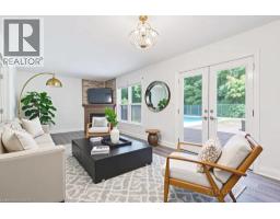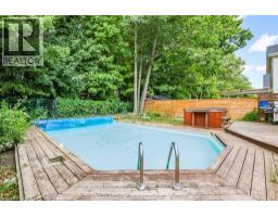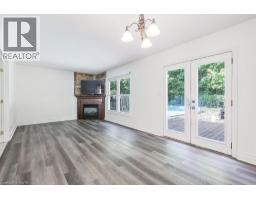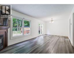 Welcome to this charming three-bedroom, one-and-a-half-bathroom two-storey home located in the quiet town of Caledonia. Nestled on a private lot backing onto a school and wooded area, this property provides a rare sense of privacy with no rear neighbours. The main level features a bright eat-in kitchen with white cabinetry and granite countertops, opening into a spacious living and dining area highlighted by a cozy gas fireplace and French doors that lead to the backyard. Upstairs, the primary bedroom offers a large closet, complemented by two additional bedrooms and a four-piece bathroom. The finished basement extends the living space with laminate flooring and a second gas fireplace, creating a comfortable setting for relaxation, gatherings, or a home office. Outdoors, enjoy your own retreat with a 15x30 chlorine pool, hot tub, and forested views that set the tone for entertaining or quiet evenings at home. A heated double-car garage adds practicality with inside entry, backyard access, a gas heater, and a bonus storage or workshop room behind the garage, providing excellent space for projects year-round. Located within walking distance to schools, parks, shopping, and community amenities, this home offers a blend of comfort, functionality, and lifestyle in a sought-after neighbourhood. (id:46441)